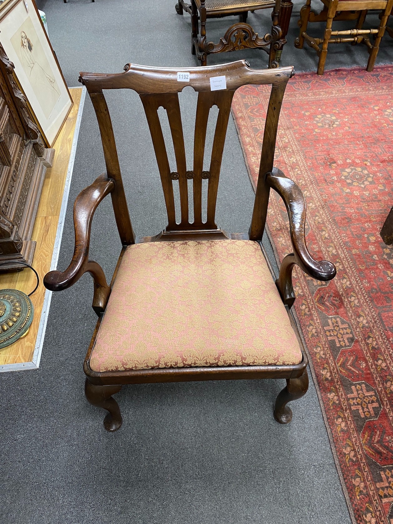 Lot 1192 , A George III mahogany elbow chair, width 70cm, depth 52cm, height 98cm