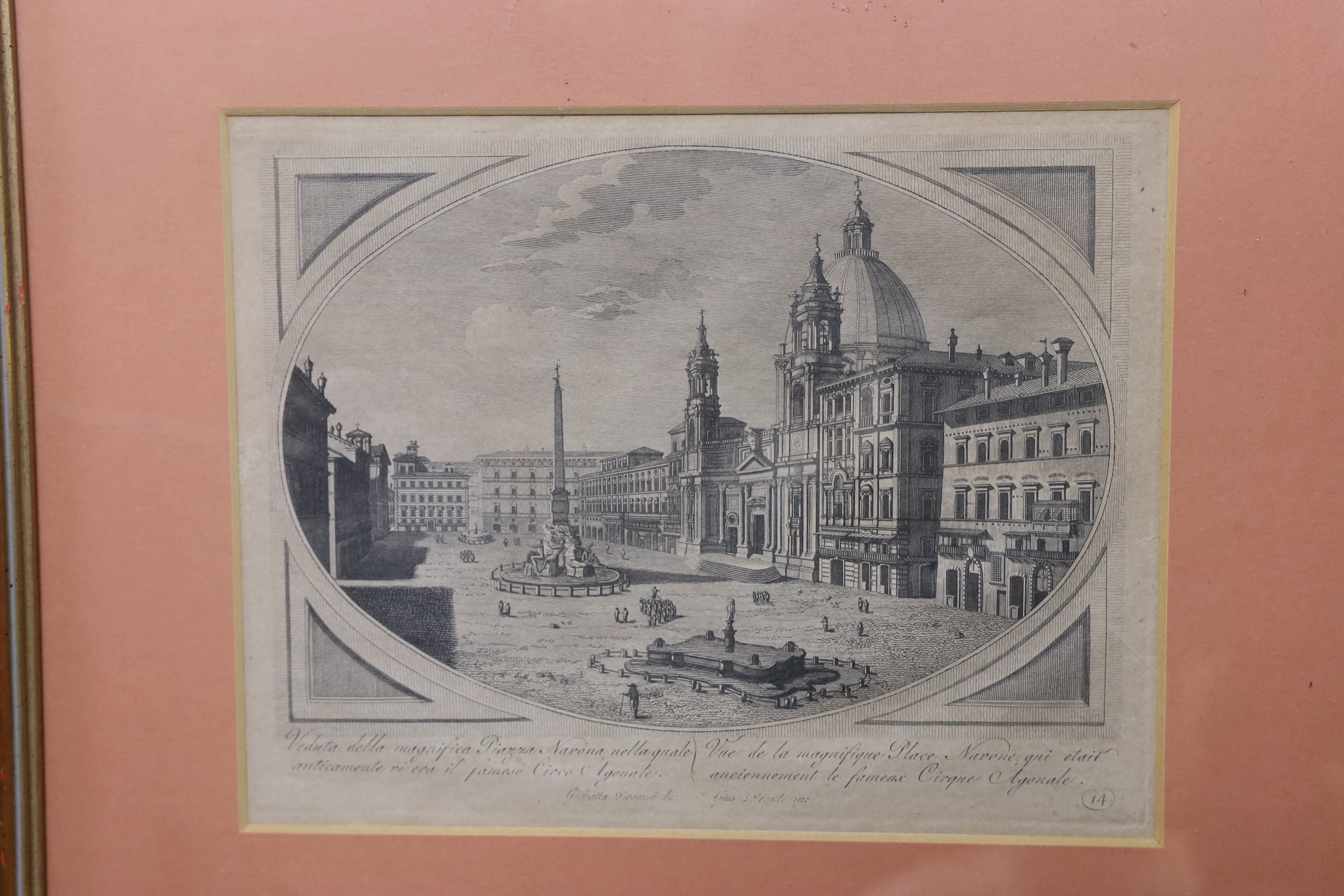 18th century Italian School, seven assorted engravings, Topographical views, largest 22 x 28cm