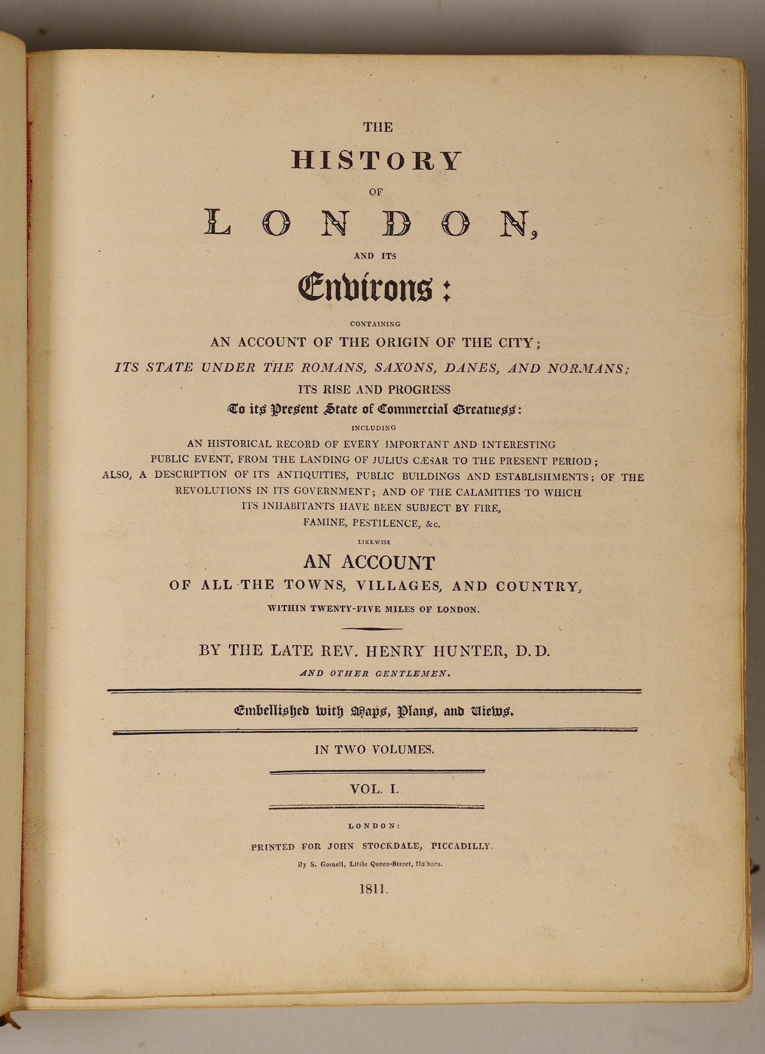 Hunter's History of London and its Environs by rev. Henry Hunter, published 1811, volumes I & II with engraved plates and folded maps
