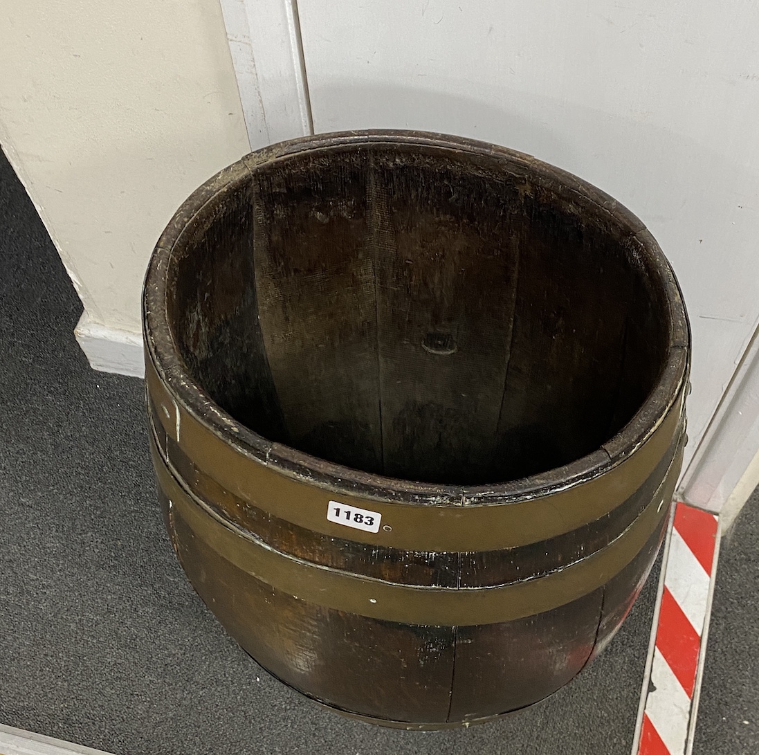 Lot 1183 , An oval oak staved and brass coopered barrel stick and umbrella stand, height 61cm