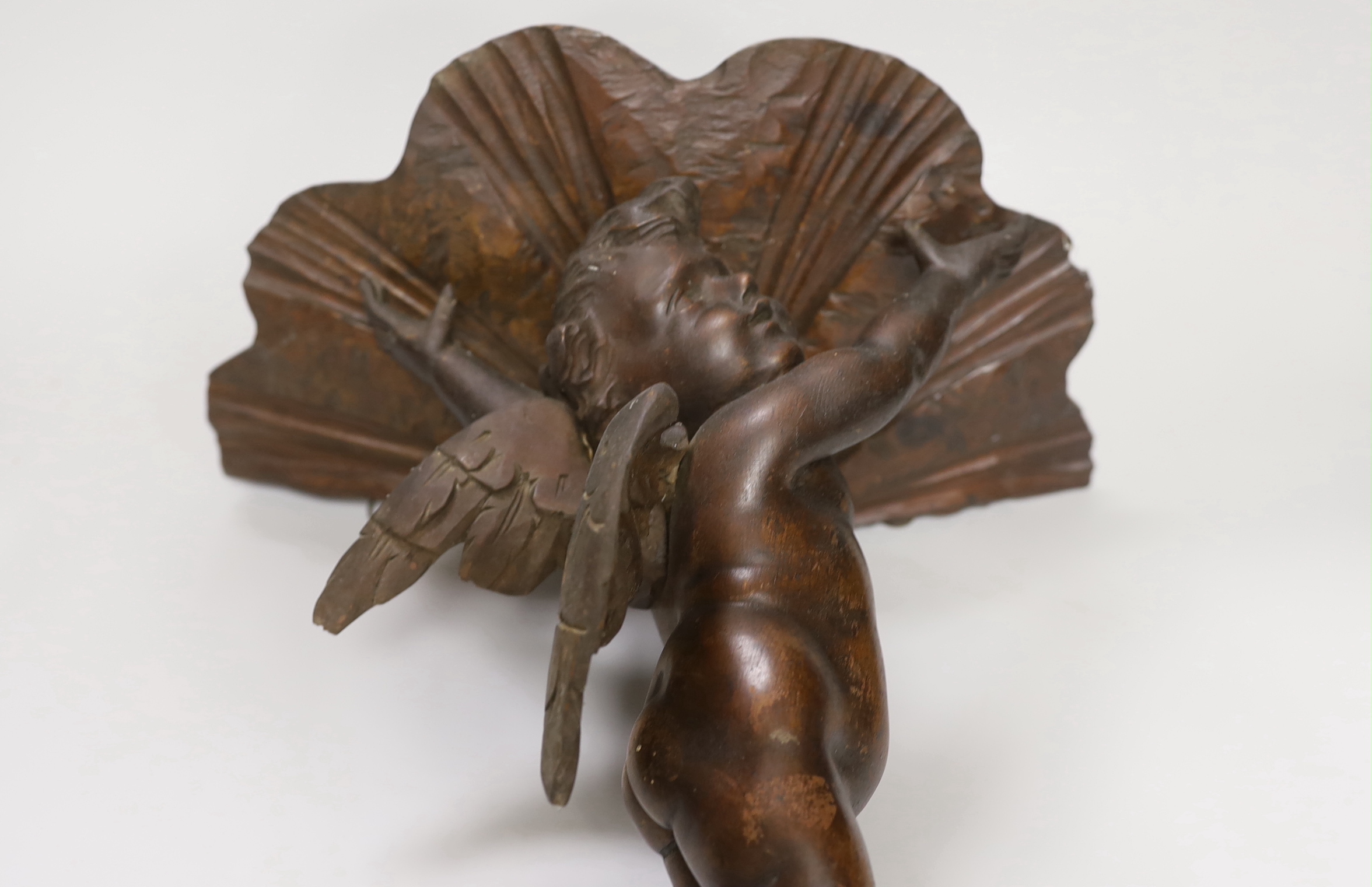 A Venetian carved wood putti wall bracket or sconce, 33cm high