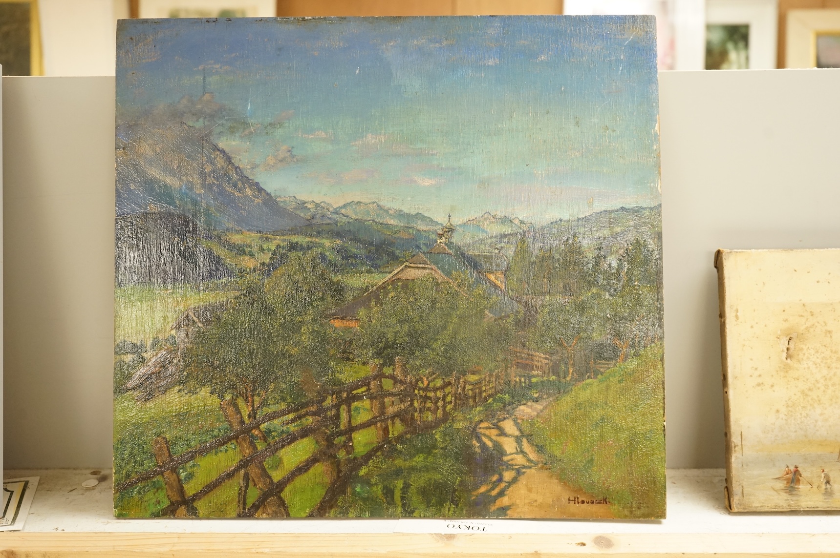 H. Louacek, oil on board, Austrian landscape, signed, inscribed verso, 40 x 42cm, unframed