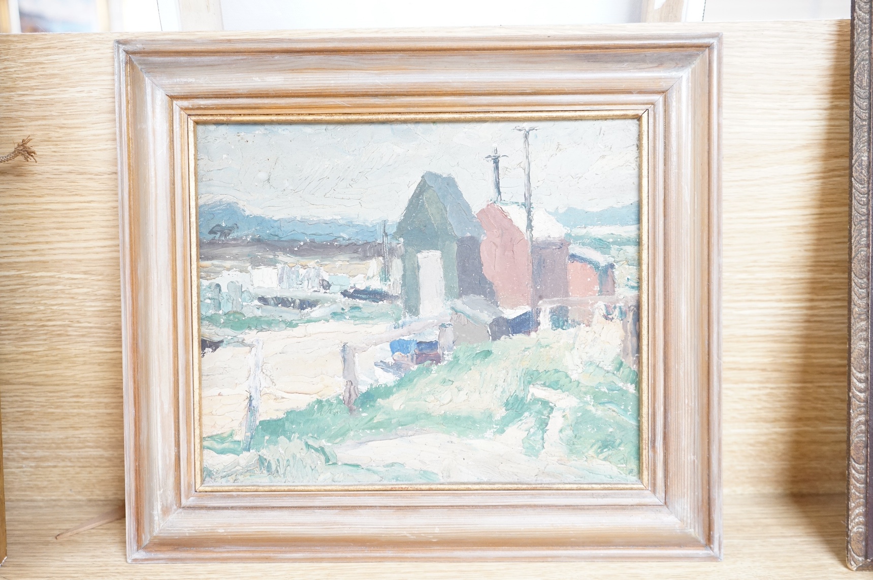 Ronald Ossory Dunlop (Irish, 1894-1973), oil on board, ‘At Walberswick’, unsigned, inscribed verso, 23 x 28cm. Condition - panel bowed, would benefit from a clean