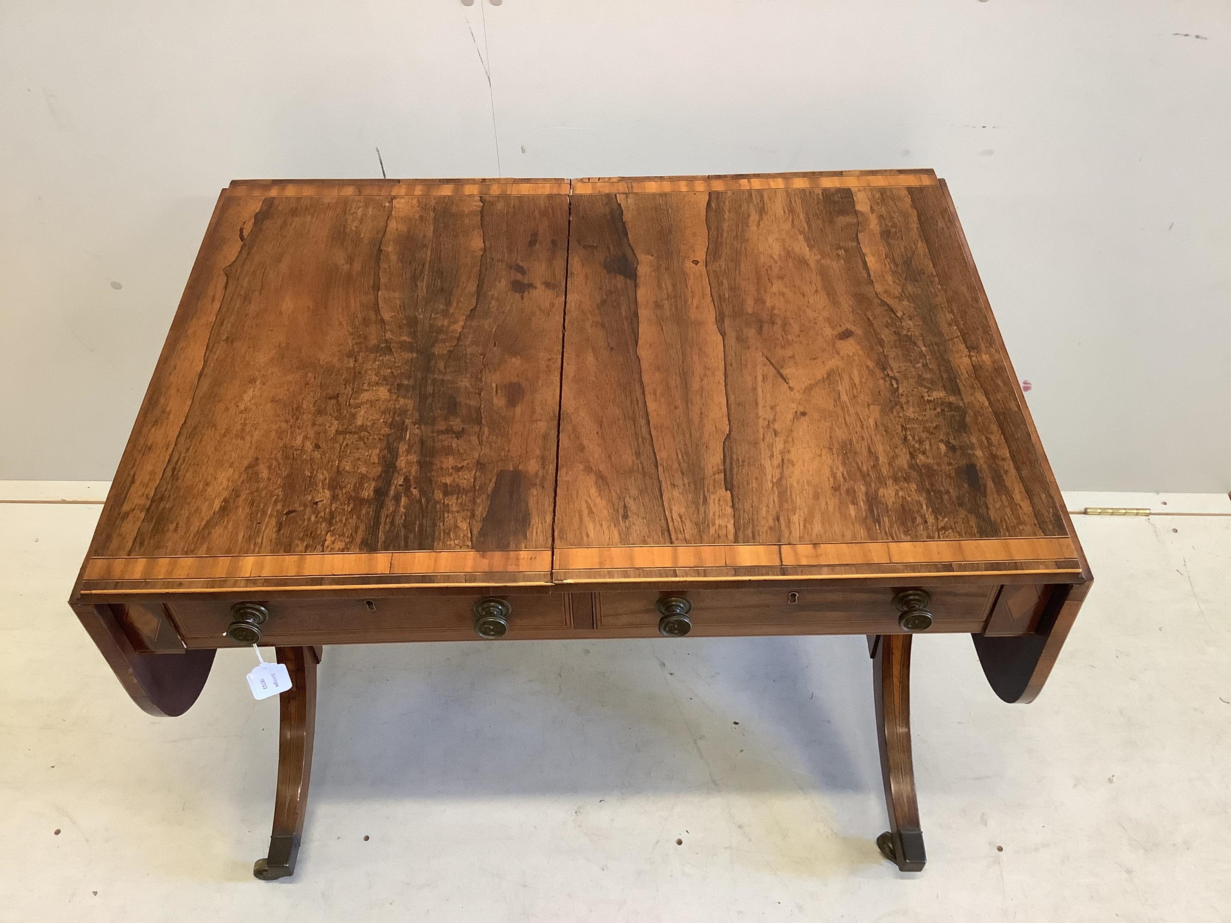 Lot 1097 , A Regency satinwood banded rosewood sofa table, width 90cm, depth 62cm, height 71cm