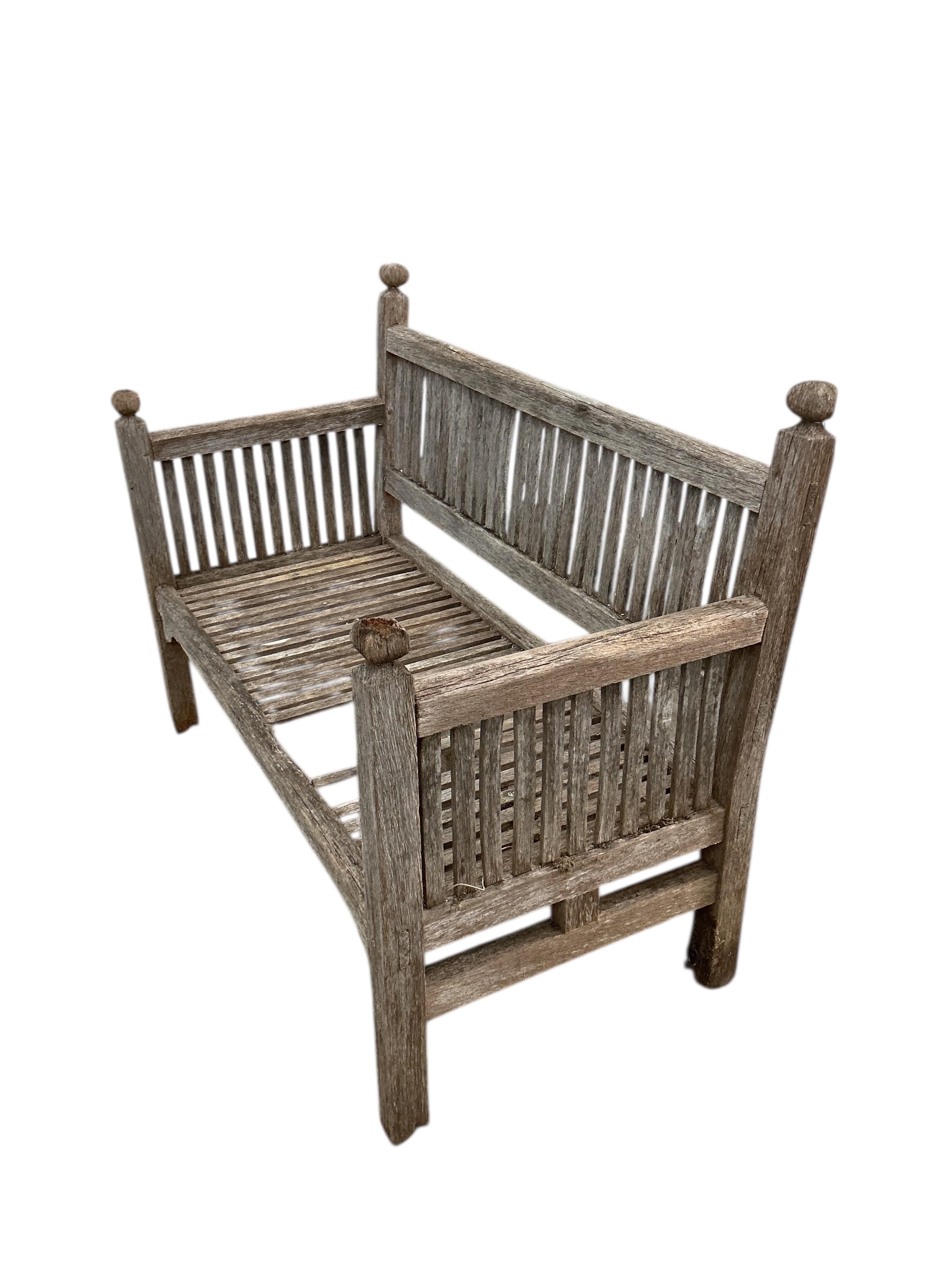 Lot 1111 , A Heals weathered teak garden bench, width 114cm, depth 56cm, height 84cm