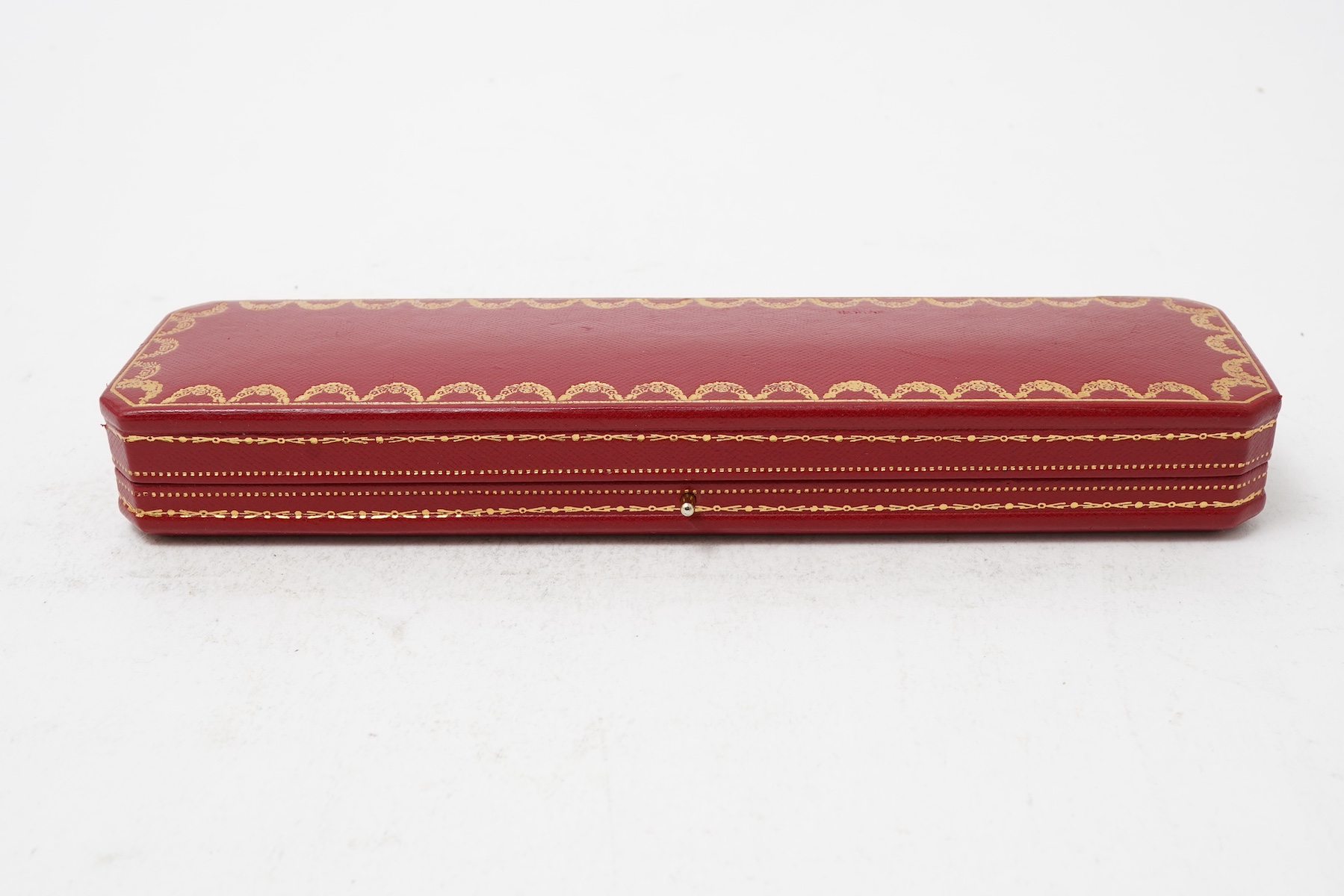 Cartier, a bracelet case, white interior, stamped Cartier Paris London New York, base stamped Cartier Made in France, length 23cm