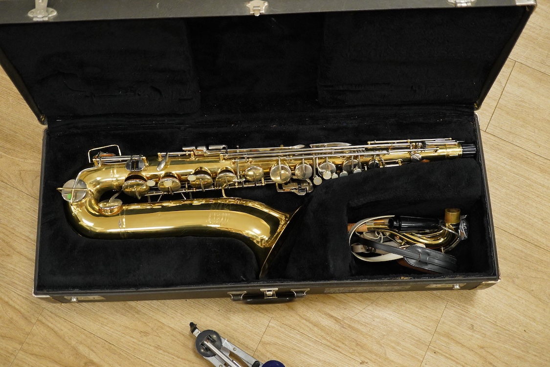 Lot 1318 , A cased Buescher Aristocrat tenor saxophone and stand