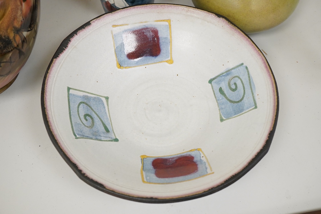 Two Cobridge vases, a Pilkington's Royal Lancastrian vase, 20cm high and a Diane Cross bowl