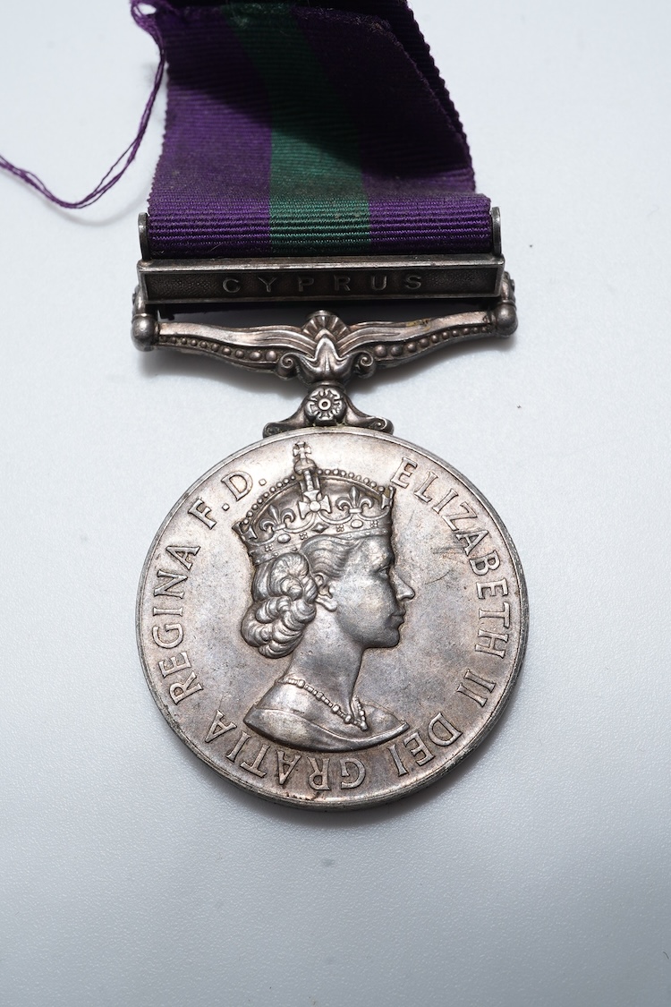 An Elizabeth II General Service medal with Cyprus Clasp awarded to 2334843 SPR I.V. Taylor R.E.