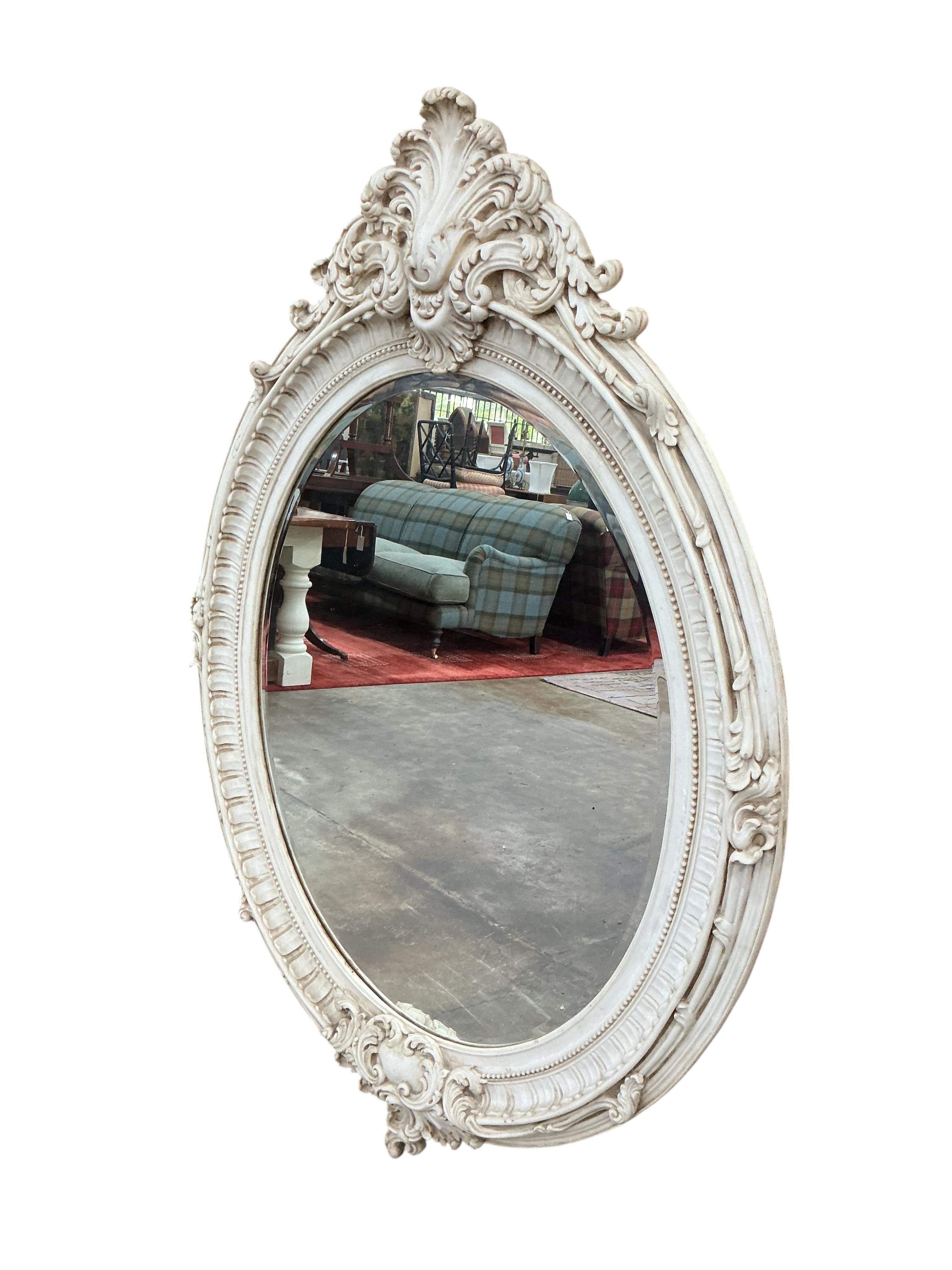 Lot 1017 , A Victorian style compostion faux marble oval wall mirror, width 104cm, height 148cm