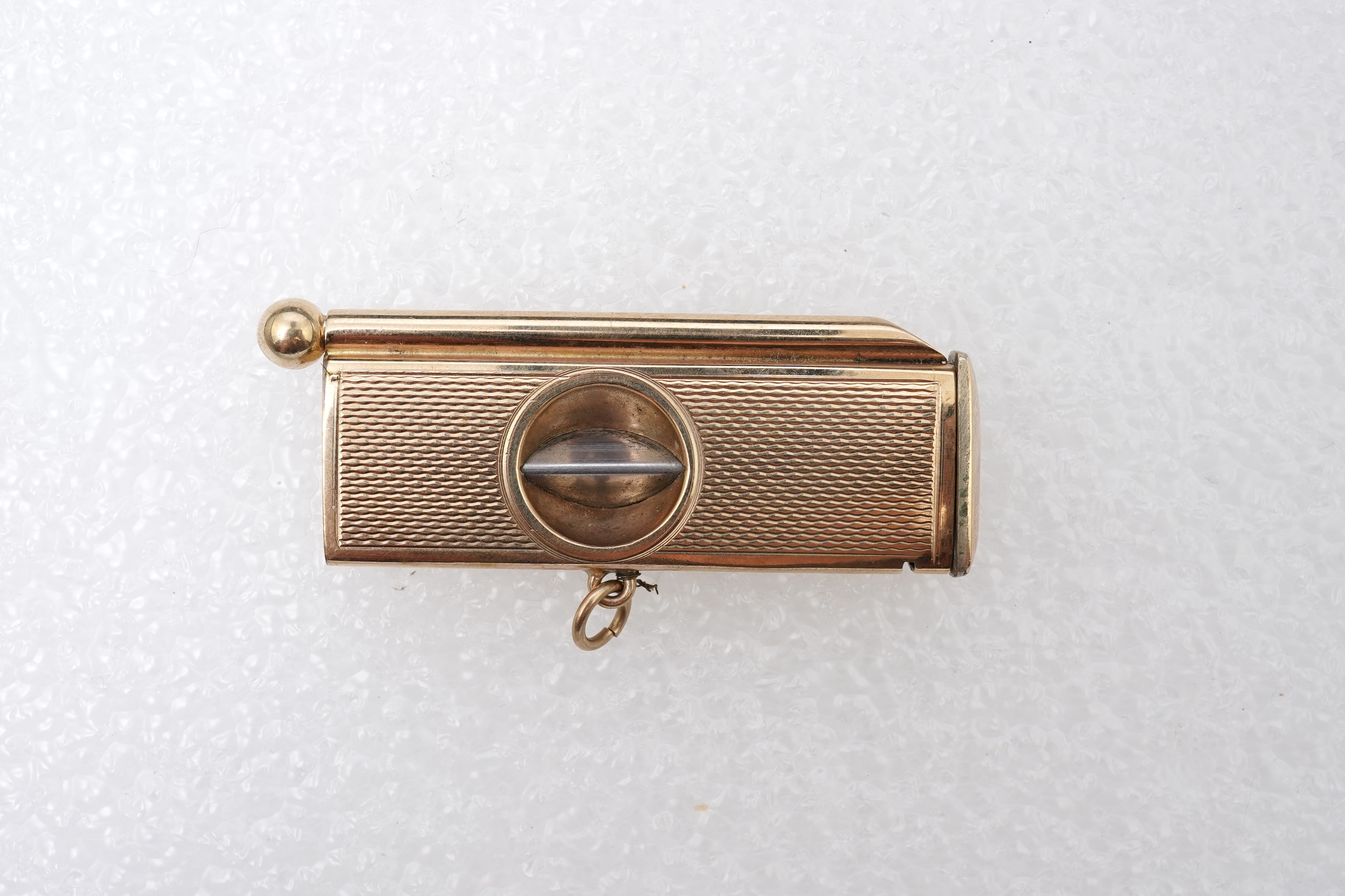 Lot 2976 , A 9ct gold cigar cutter, circa 1971, with engine turned decoration and corkscrew pin, length 5.7cm, British hallmarks, gross weight approximately 15 grams