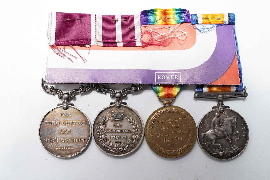 A George V military medal group awarded to S-20061 T.S.S. MJR. P.R. Blyth. R.A.S.C., comprising four medals; a GV Meritorious Service Medal,