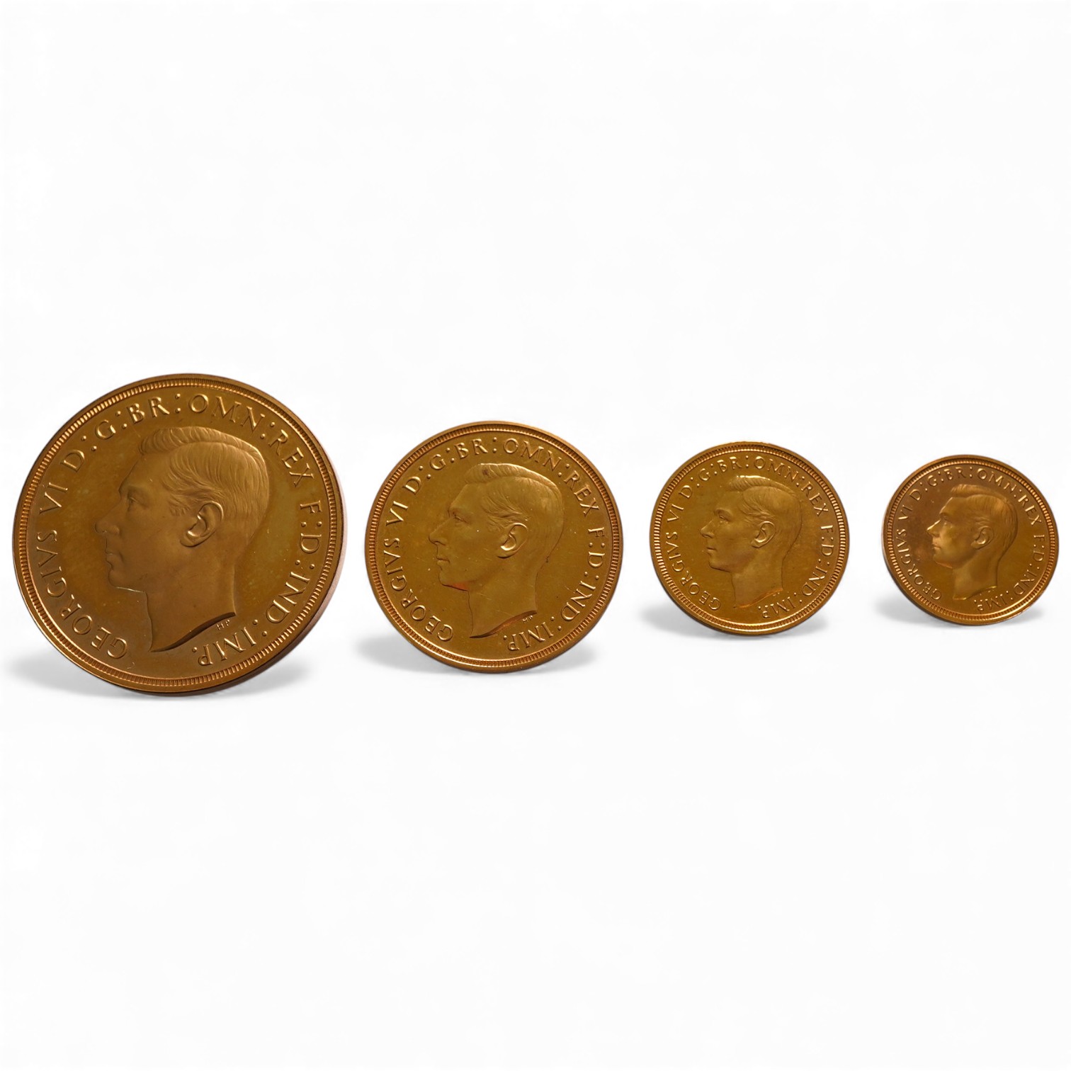 Lot 2112 , British gold coins, George VI, proof gold four coin set, 1937, comprising gold five pounds, two pounds, sovereign and half sovereign, housed in capsules