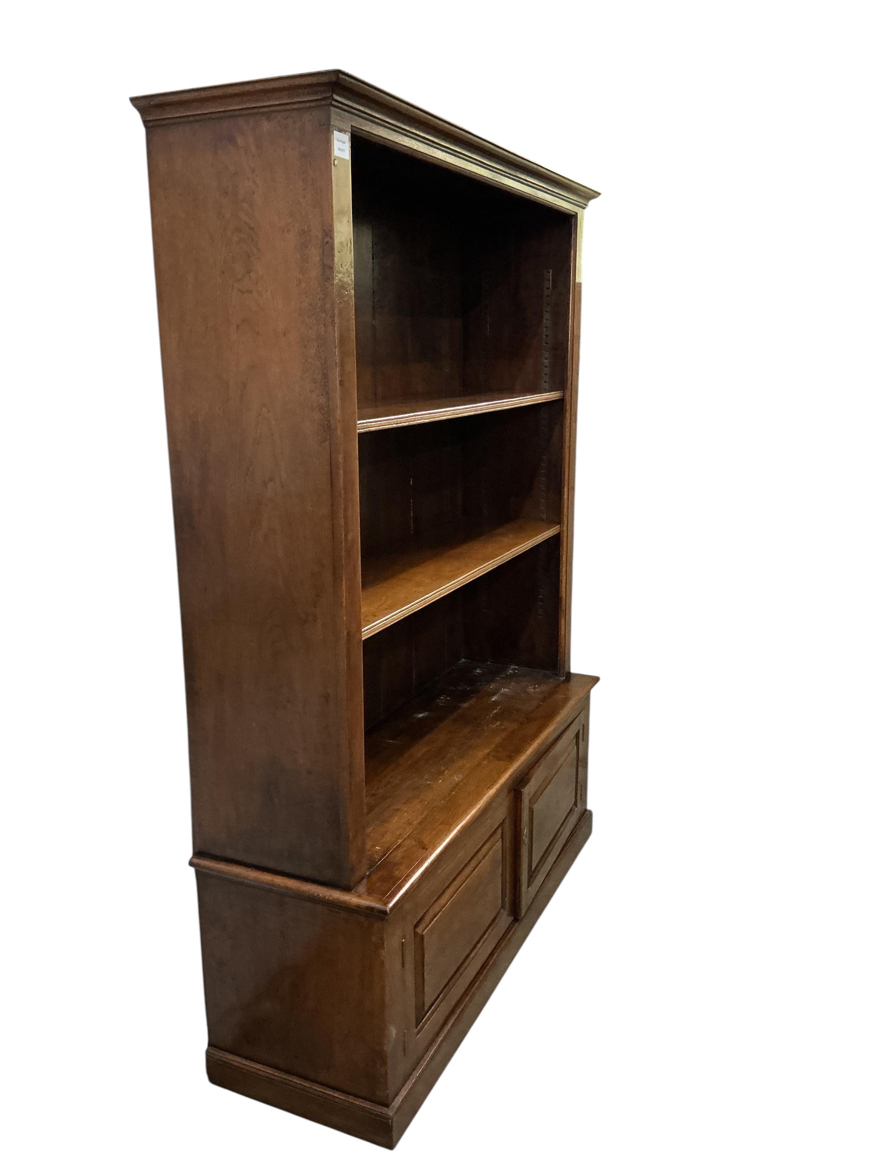 An reproduction oak open bookcase / cupboard, width 128cm, depth 41cm, height 172cm