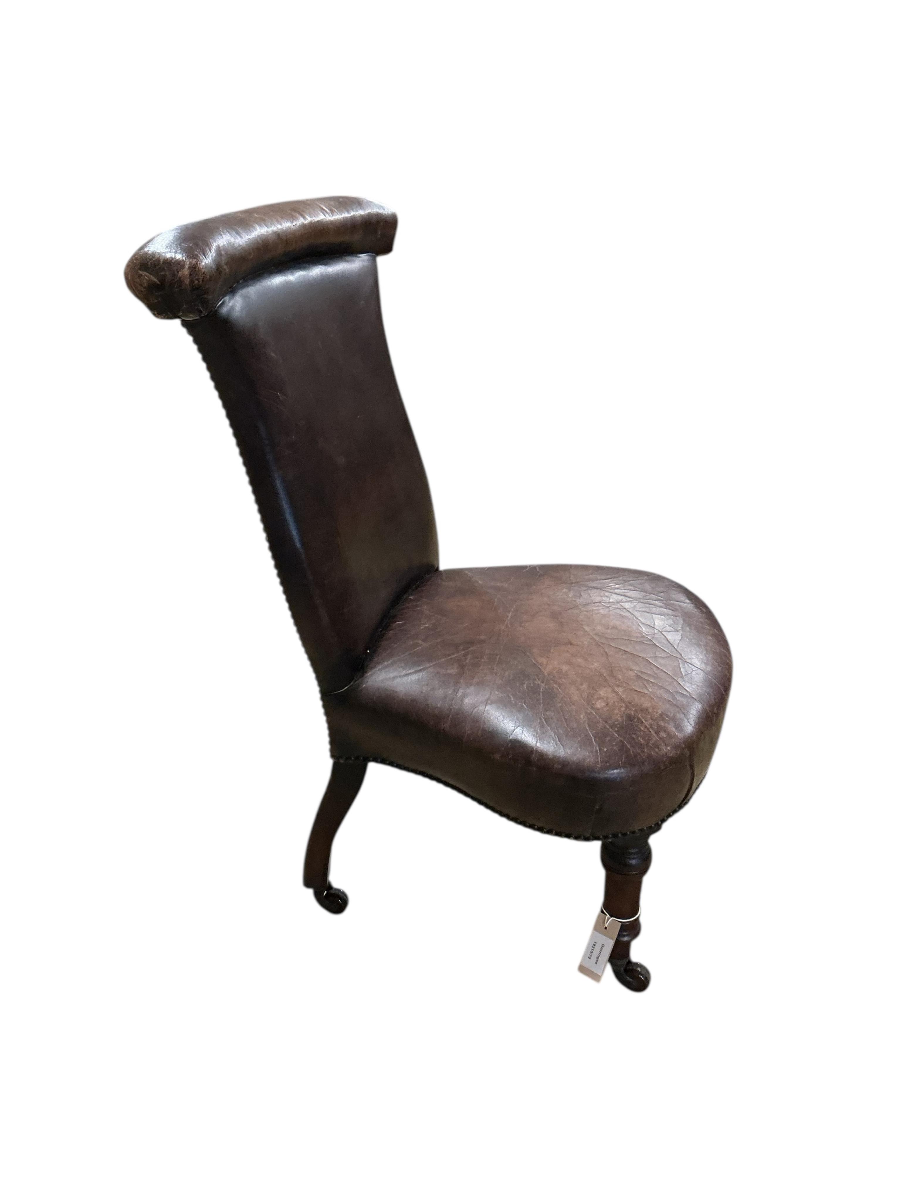 A Victorian leather and mahogany pre-dieu, width 51cm, depth 45cm, height 84cm