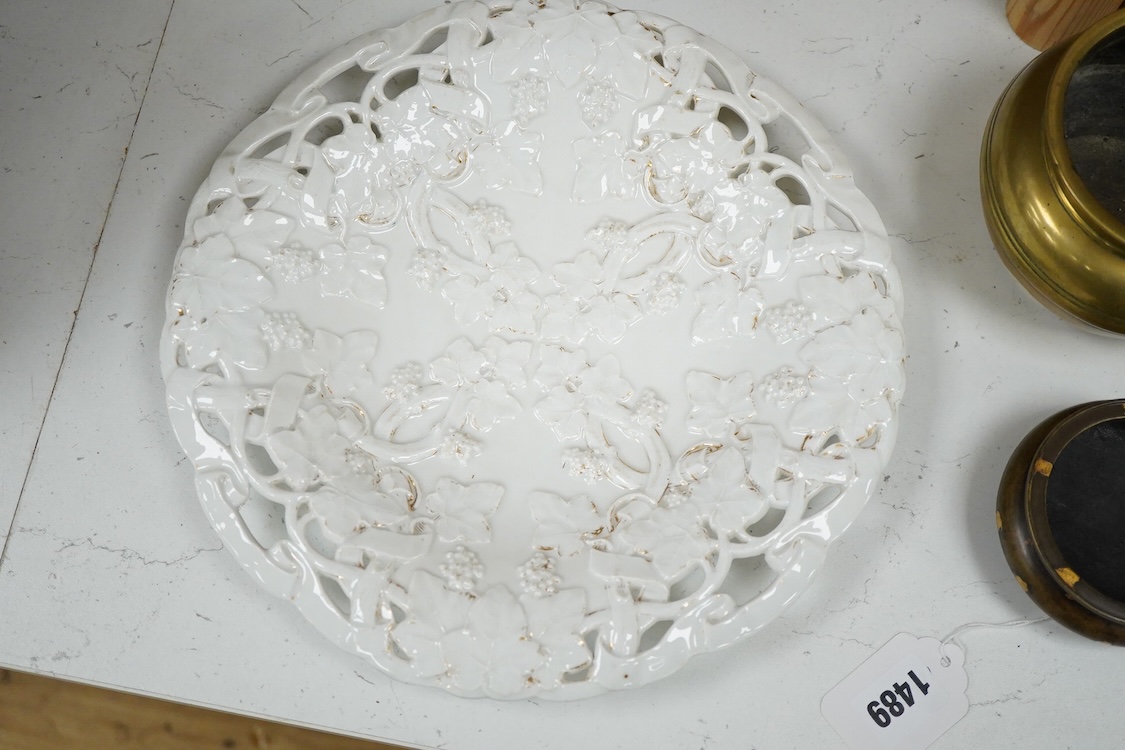 An 18th century Meissen flower painted dish, 24cm in diameter and a 19th-century Meissen moulded dish depicting grapevines