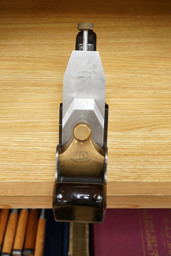 Lot 2337 , A Norris A6 adjustable smoothing plane, stamped with Norris, London to both the brass lever cap and the iron, with owner’s name lightly stamped to the infill