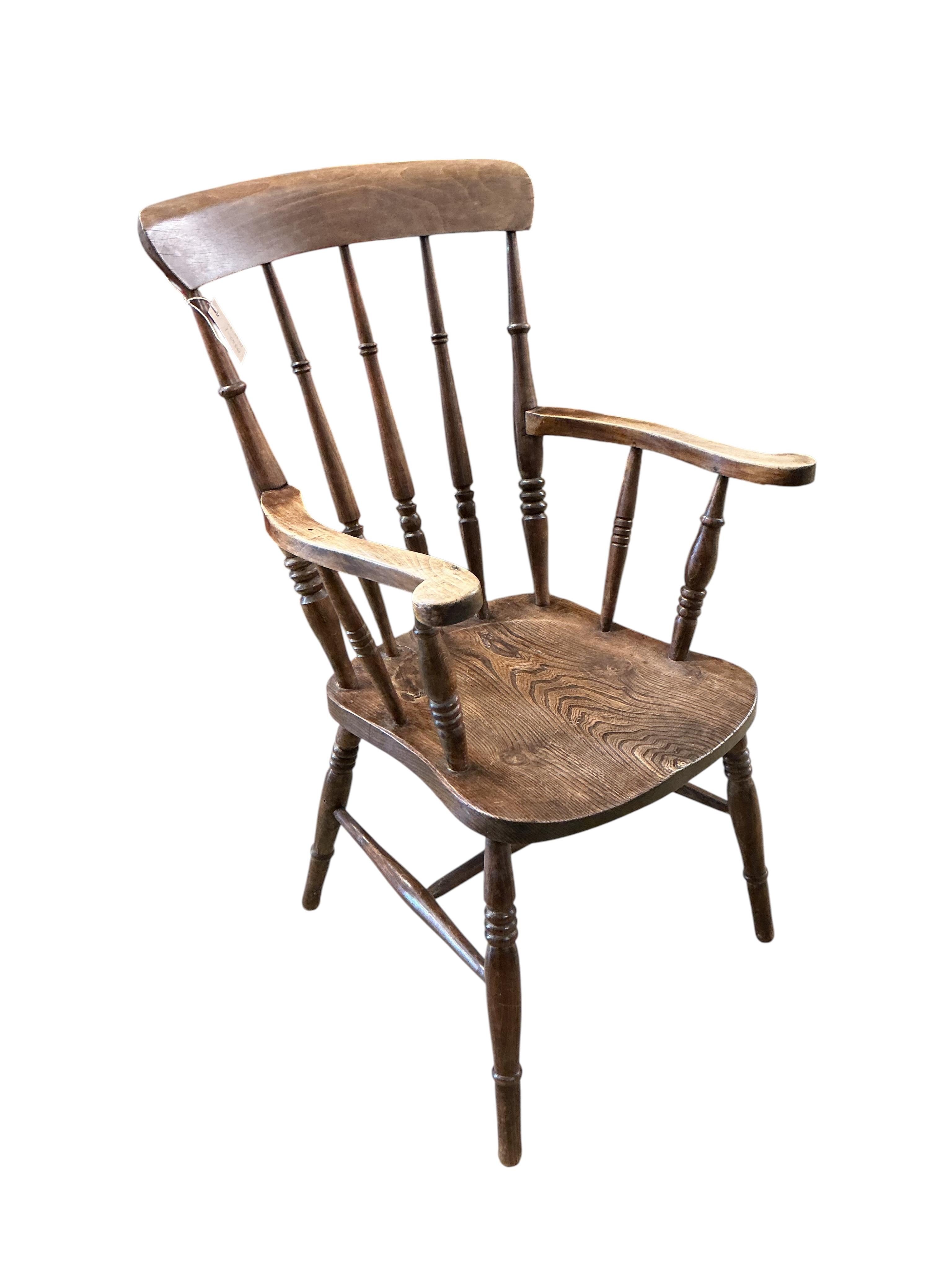 Lot 112 , A Victorian elm and beech Windsor armchair, width 59cm, depth 46cm, height 100cm