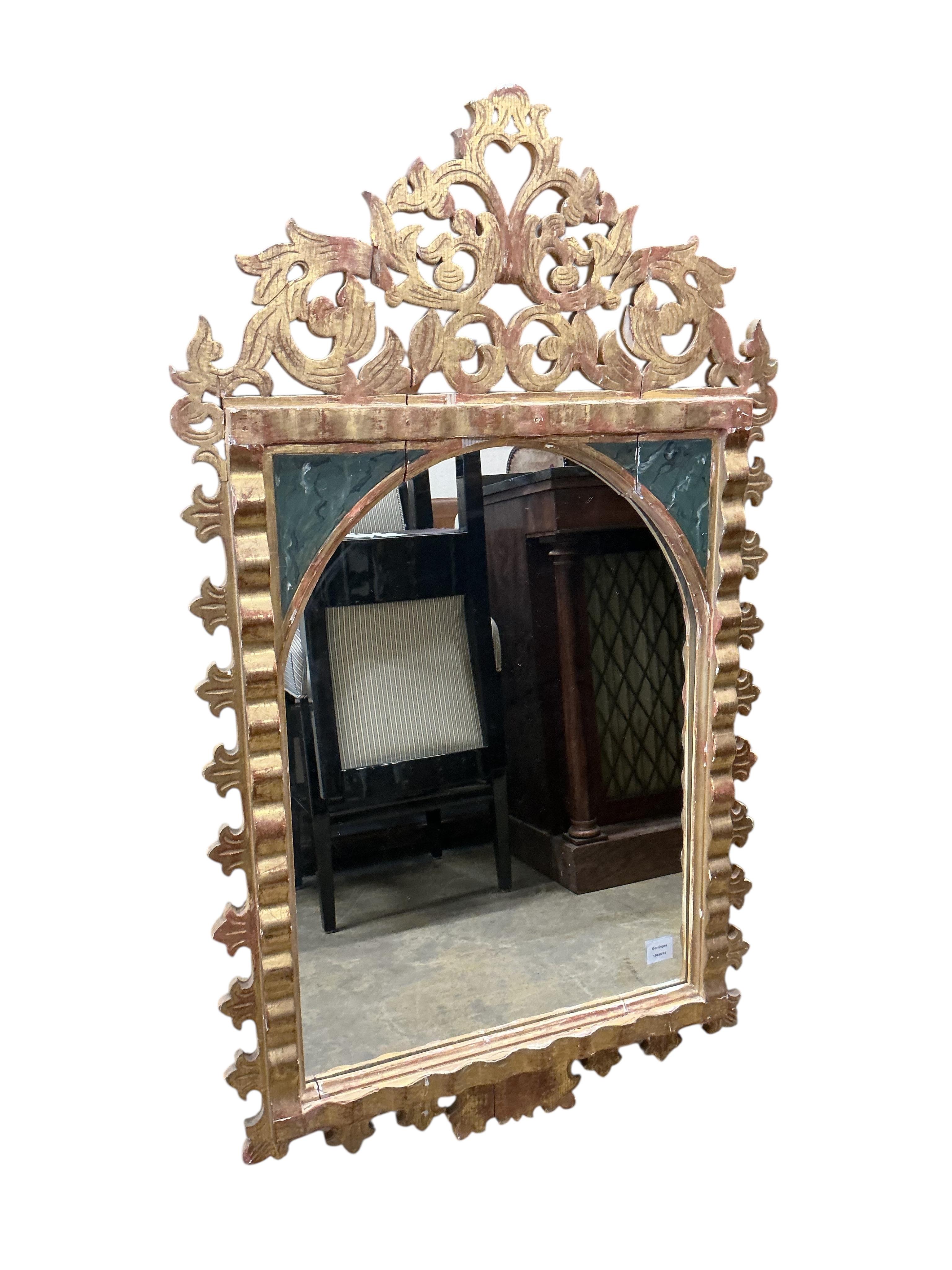 A pair of Italian painted carved giltwood wall mirrors, width 72cm, height 125cm