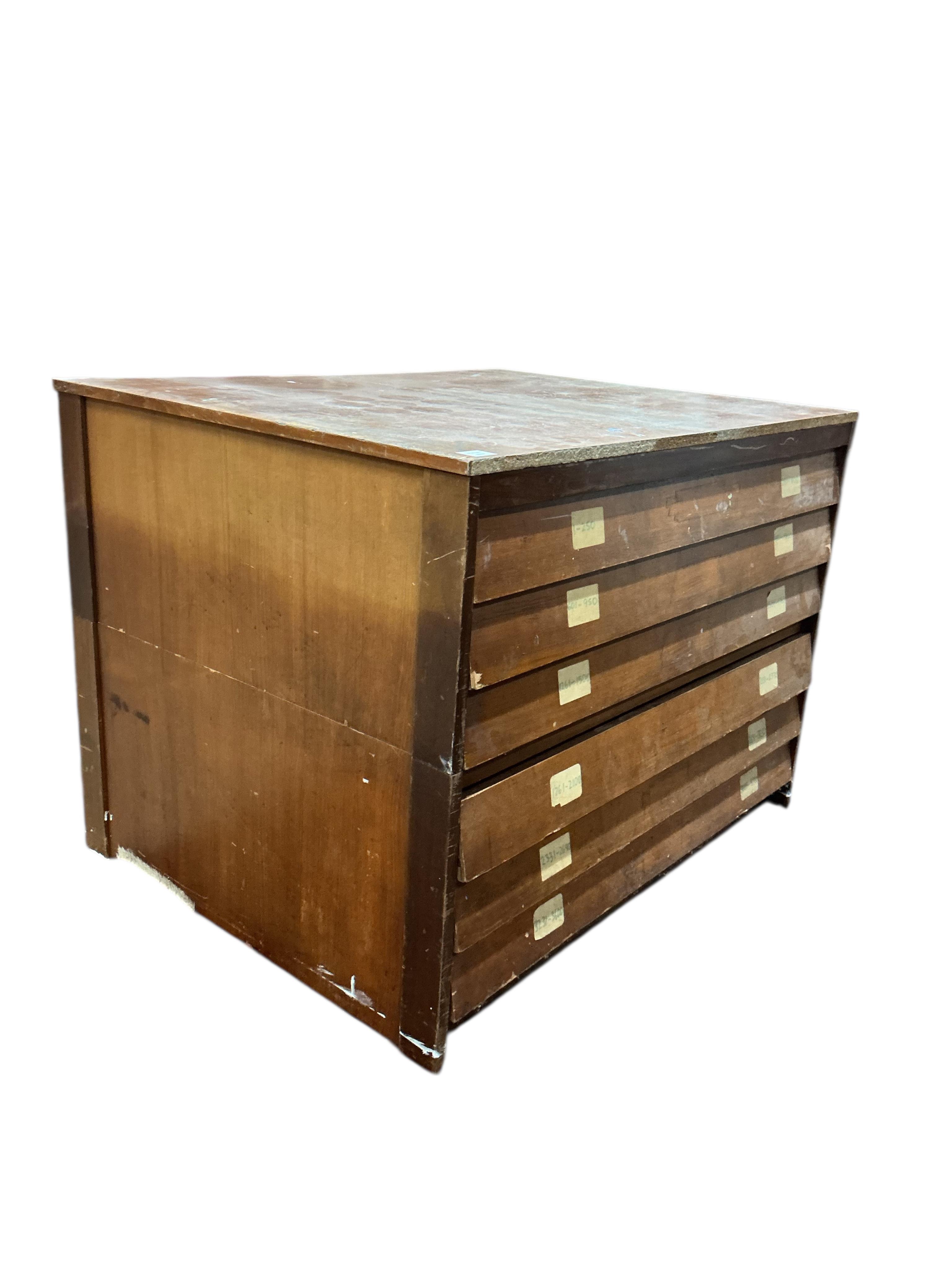 A mid century teak six drawer plan chest, width 115cm, depth 89cm, height 85cm