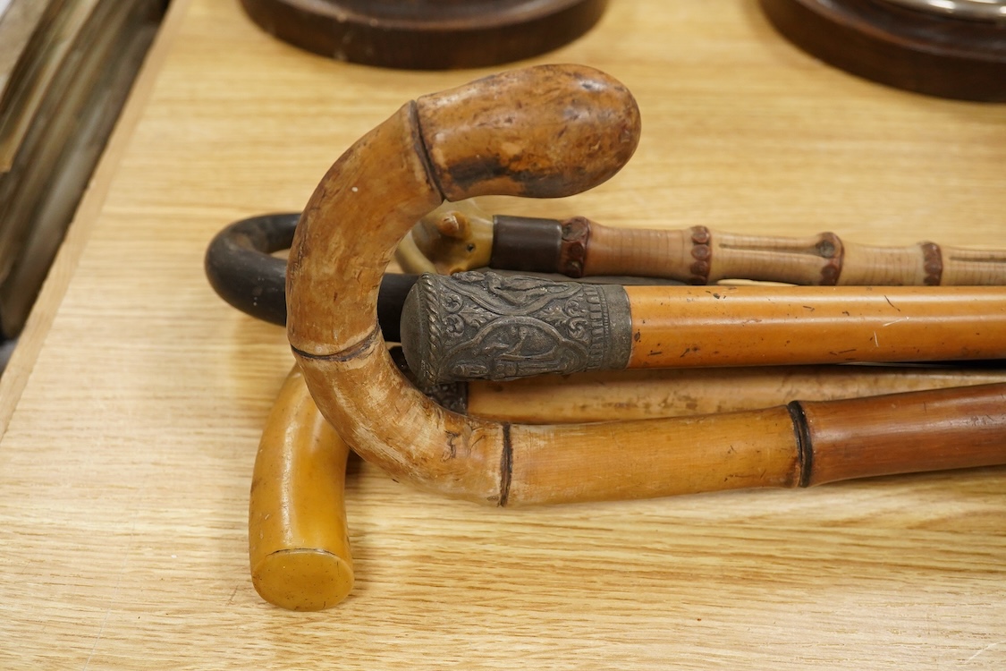 Lot 2416 , A collection of six various walking canes to include a silver mounted example and one with horn handle