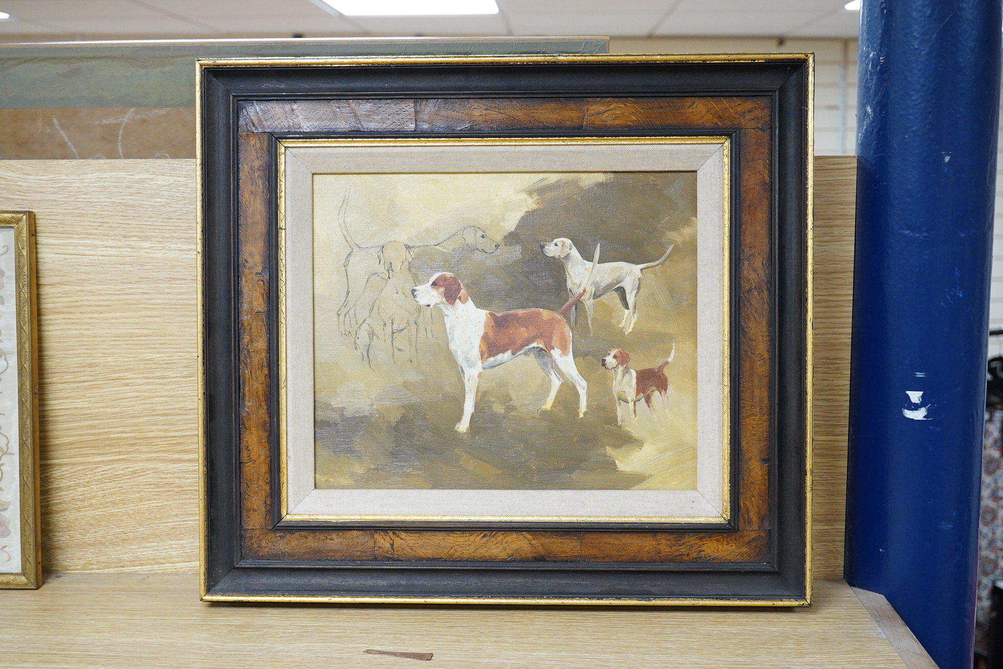 Ruth Gibbons (b.1945), ‘Hound studies, The Suffolk’, unsigned, The Tryon Gallery, London label verso, oil on canvas, 24 x 29cm