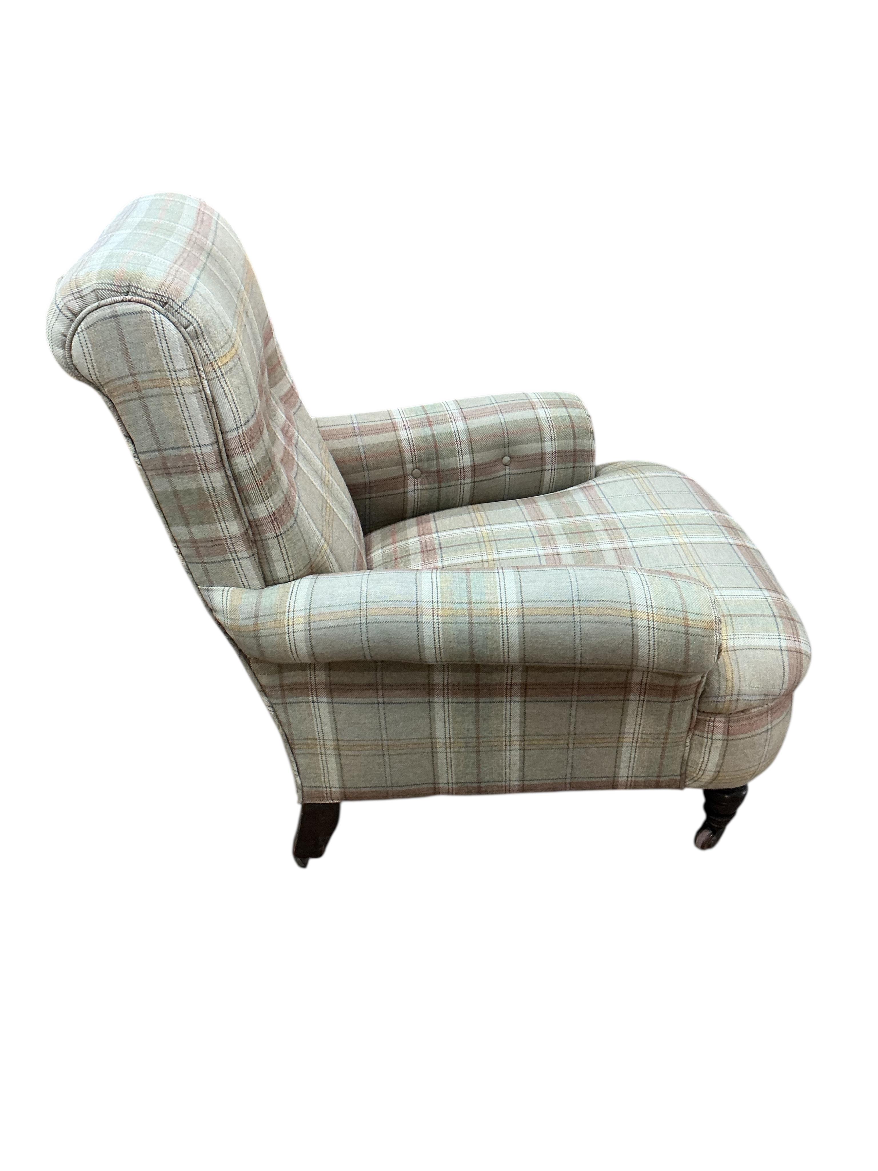 Lot 2095 , A Victorian armchair upholstered in a tartan wool fabric, width 84cm, depth 84cm, height 88cm