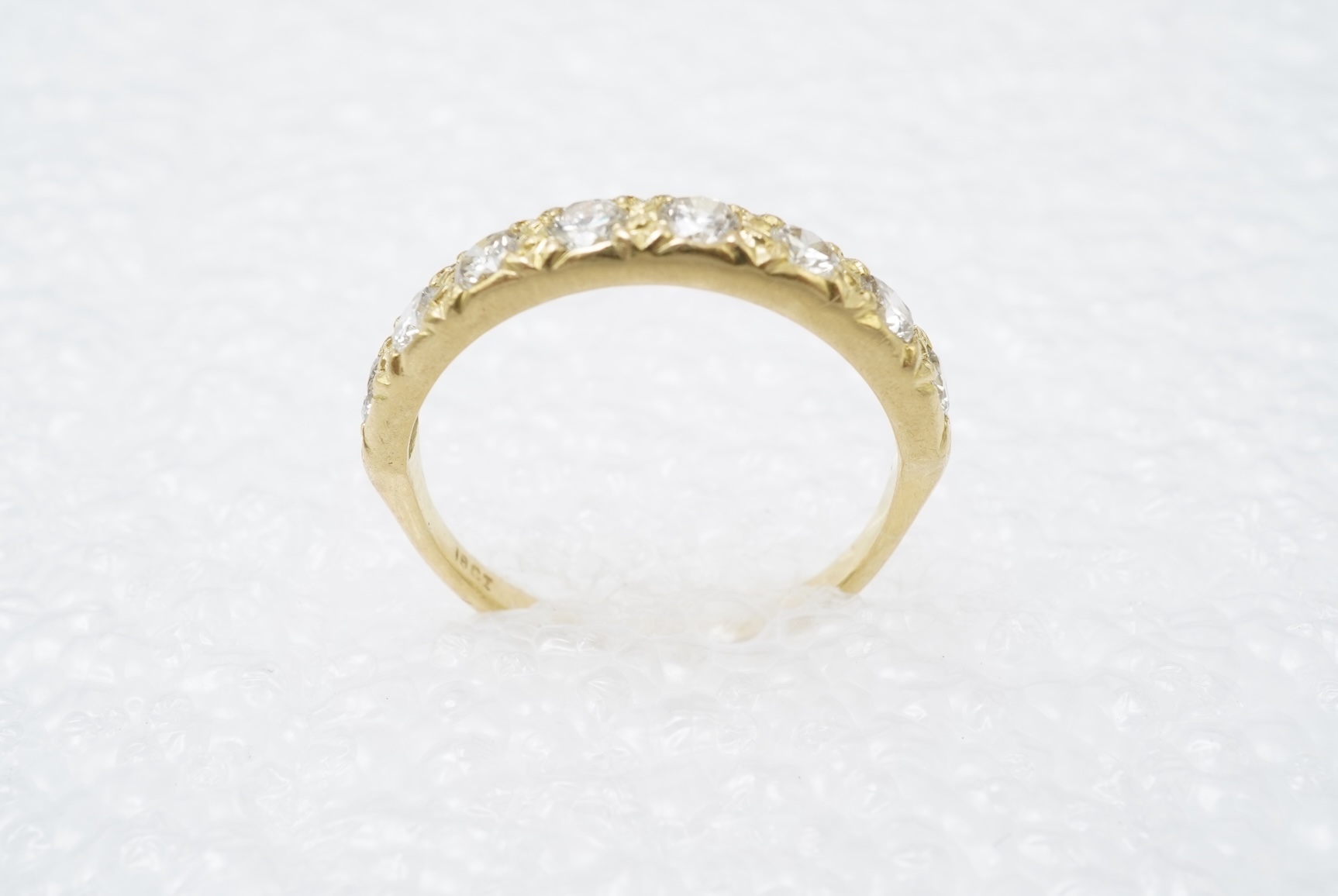 A diamond half eternity ring, set to the front with a sequence of eight brilliant-cut diamonds totalling approximately 0.80 carats, mounted in gold, size R, stamped 18ct, gross weight approximately 3.5 grams