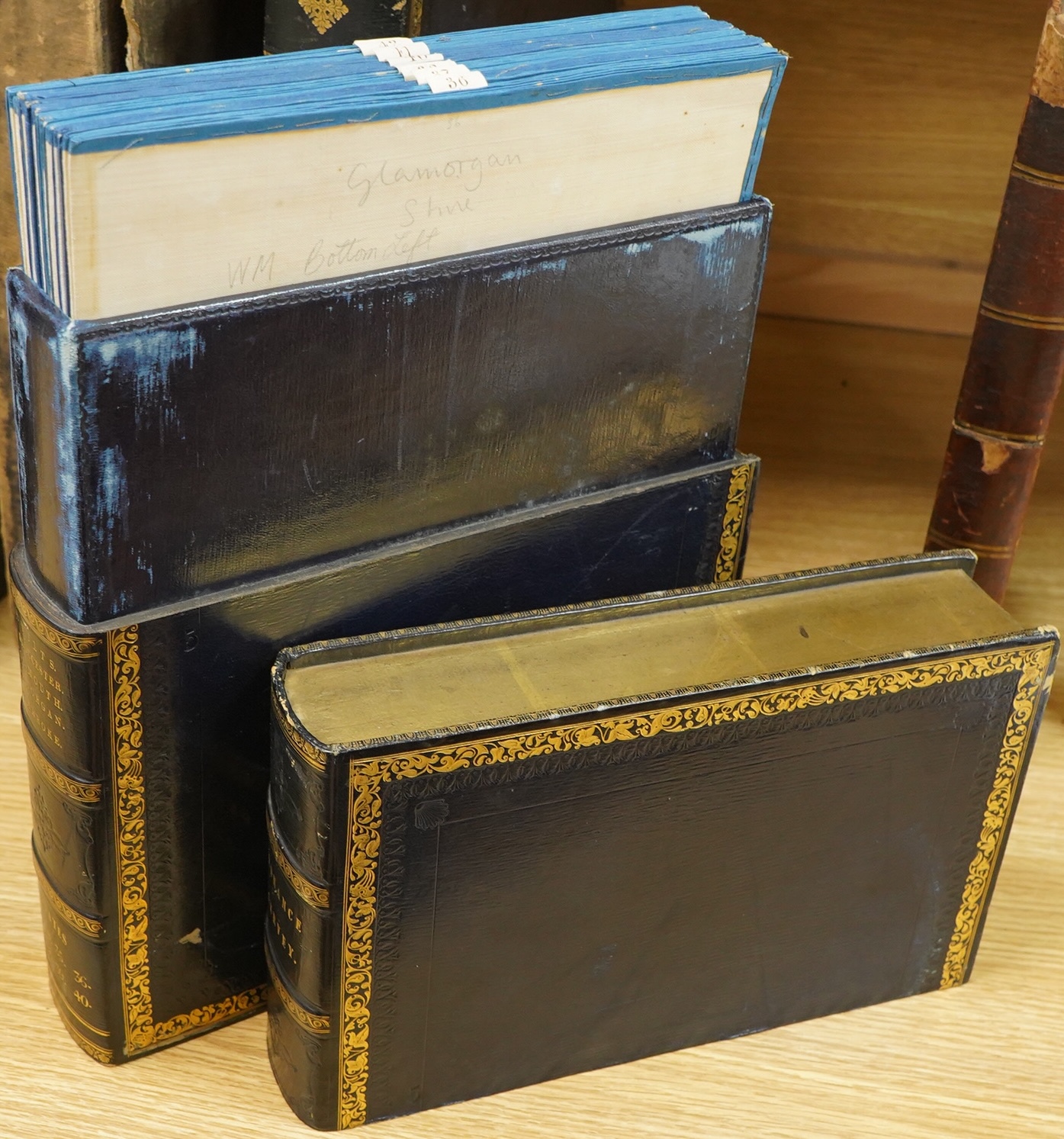 Ordnance Survey maps, comprising of a set of eight engraved maps mounted on linen and each edged with blue cotton, covering N. Wiltshire, S. Gloucester, Monmouth, Glamorgan, and Pembroke, sheet no.s; 36, 37, 38, 39, 40, 41, 42 and 43, engraved by Benjamin Baker at the Ordnance Map Office in the Tower, and published by Lt. Col. Colby, of the Royal Engineers, dated 1833, in a leather slip case with lid and gilt tooling, disguised as a book