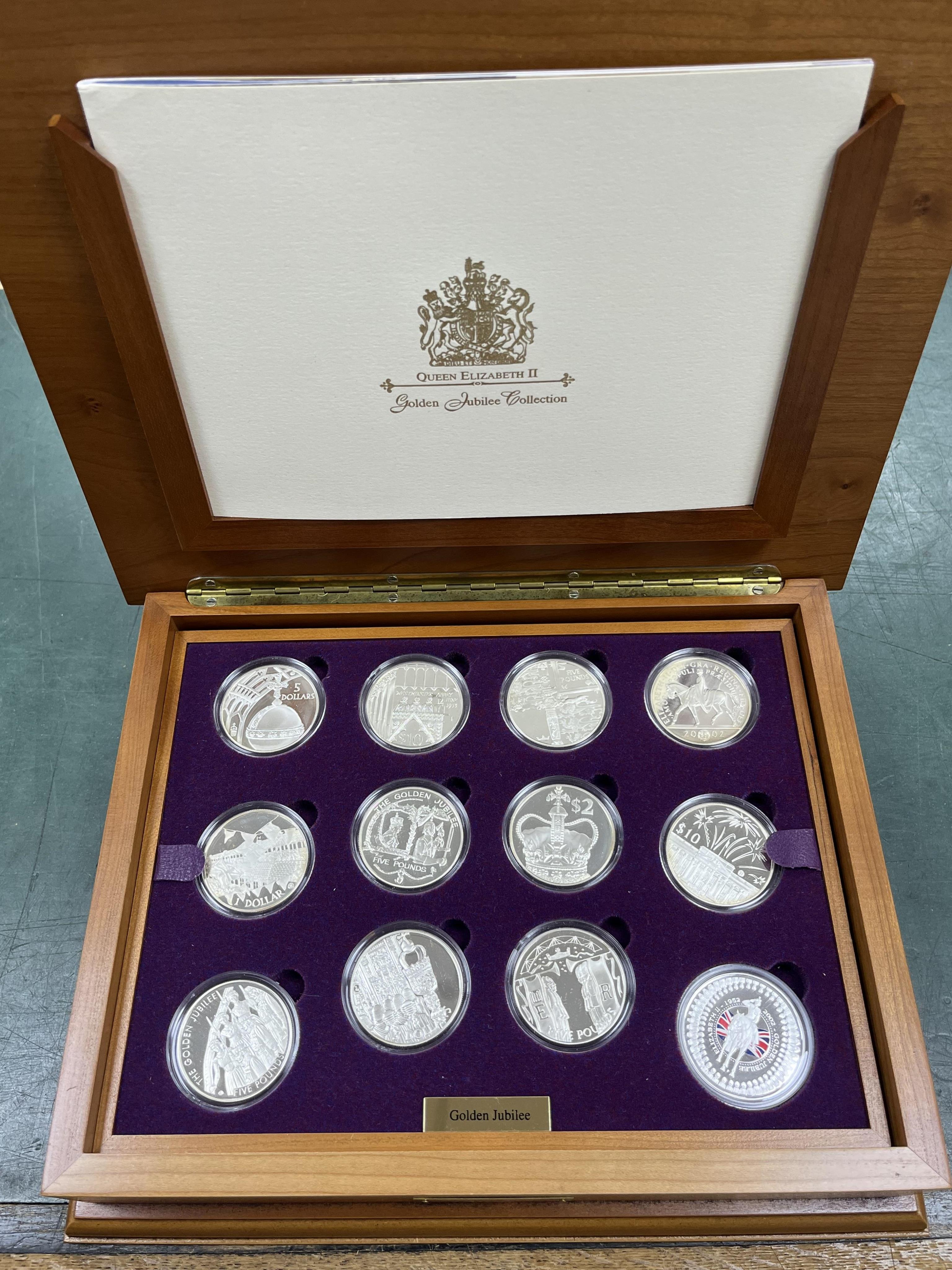 Lot 2085 , British and British dependencies proof silver coin set, Elizabeth II, Golden Jubilee collection, comprising 24 crown-sized proof silver coins, each 28.28g, in case of issue with certificate