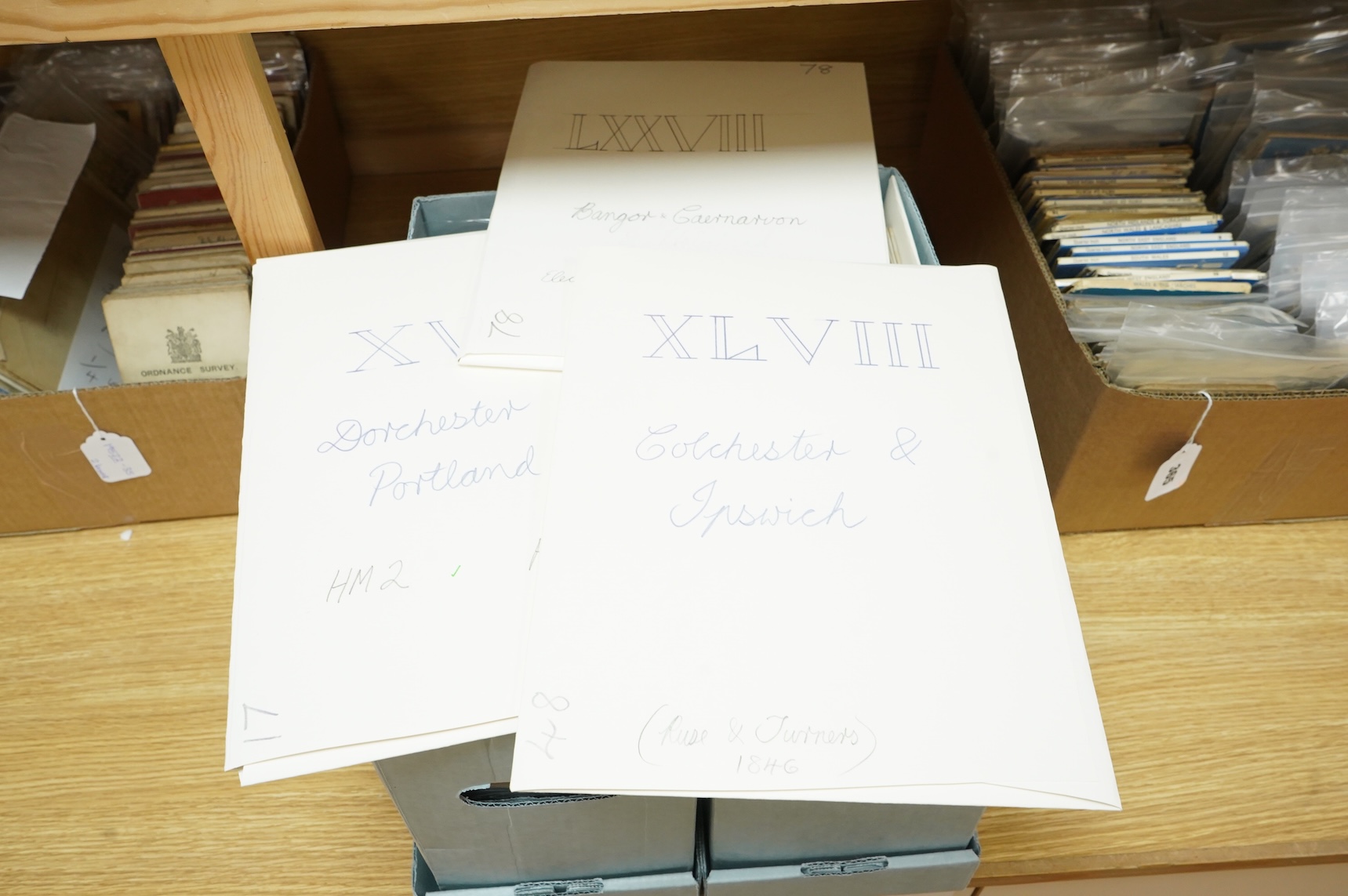 A collection of forty-eight mid to late 19th century Ordnance Survey maps, areas covered include; Brentwood, Sherness, Kent, Hastings, West Sussex, Portsmouth, Amesbury, Salisbury, Colchester & Ipswich, etc.