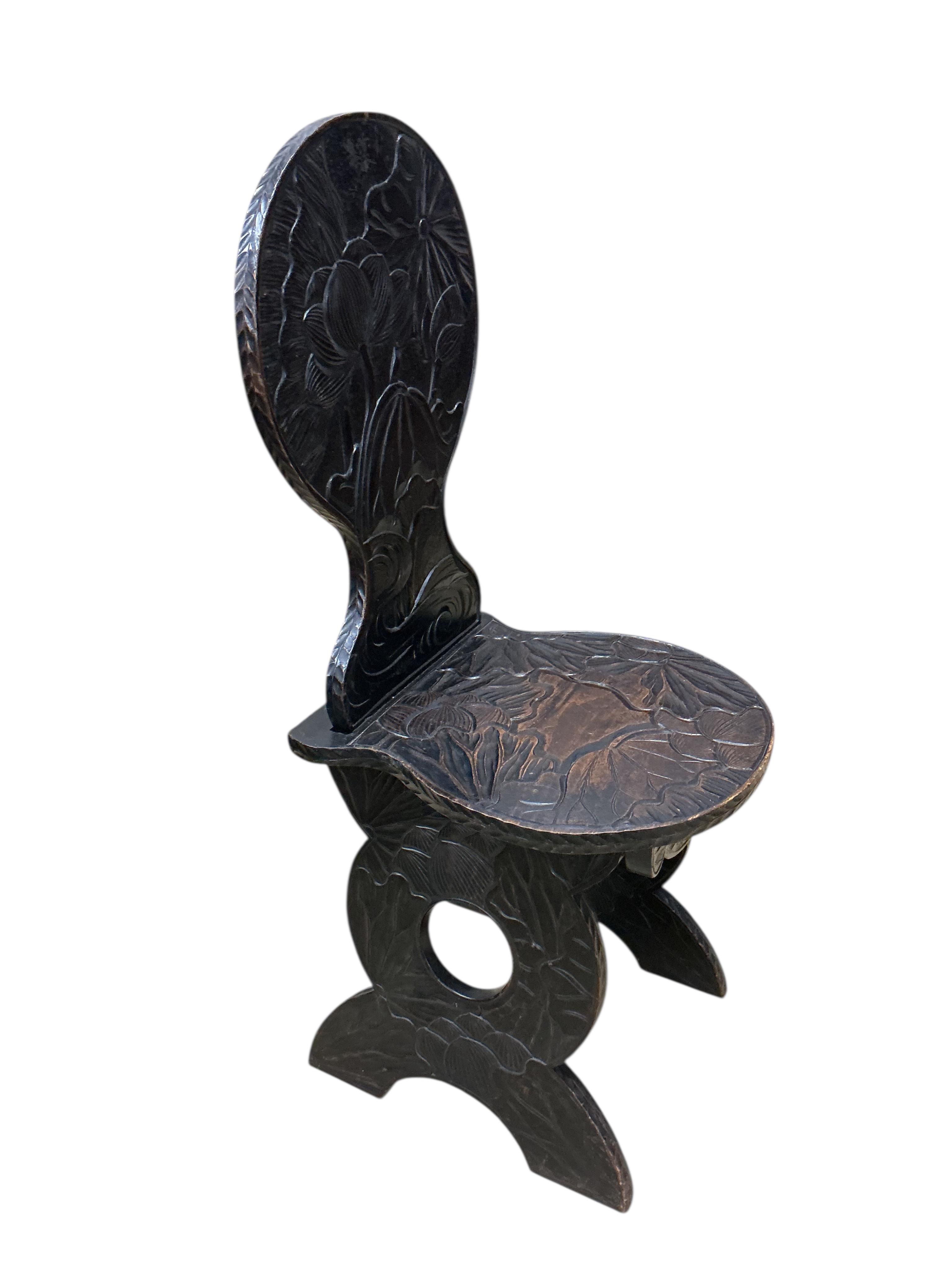 A Japanese carved hardwood hall chair for Liberty, width 39cm, depth 44cm, height 100cm