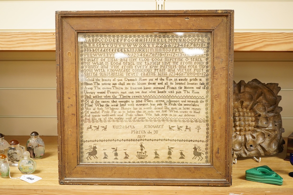 Lot 434 , A 19th century framed sampler by Elizabeth Knowles, 31cm sq