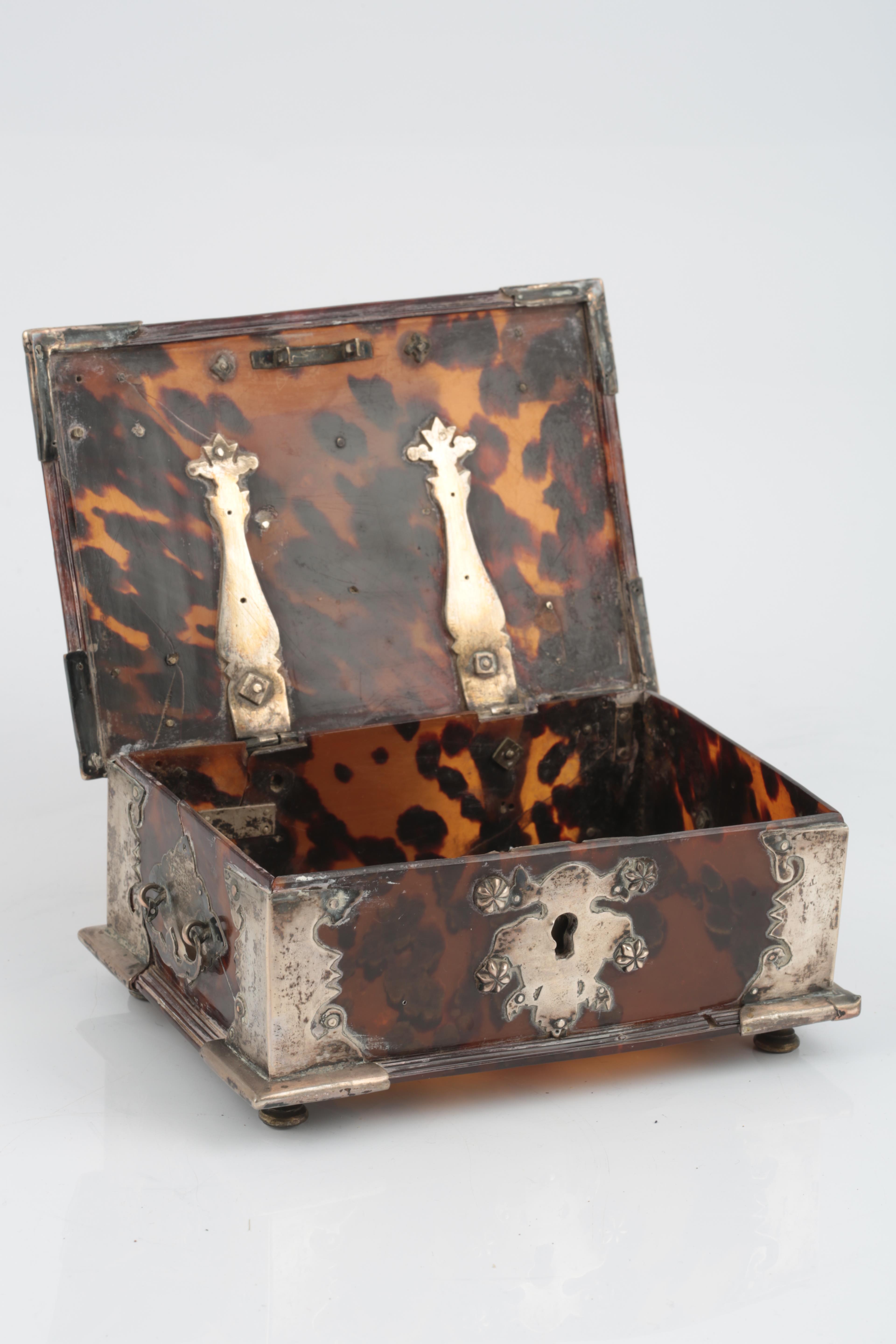 Lot 35 , A Dutch colonial silver mounted tortoiseshell sirih casket, Batavia