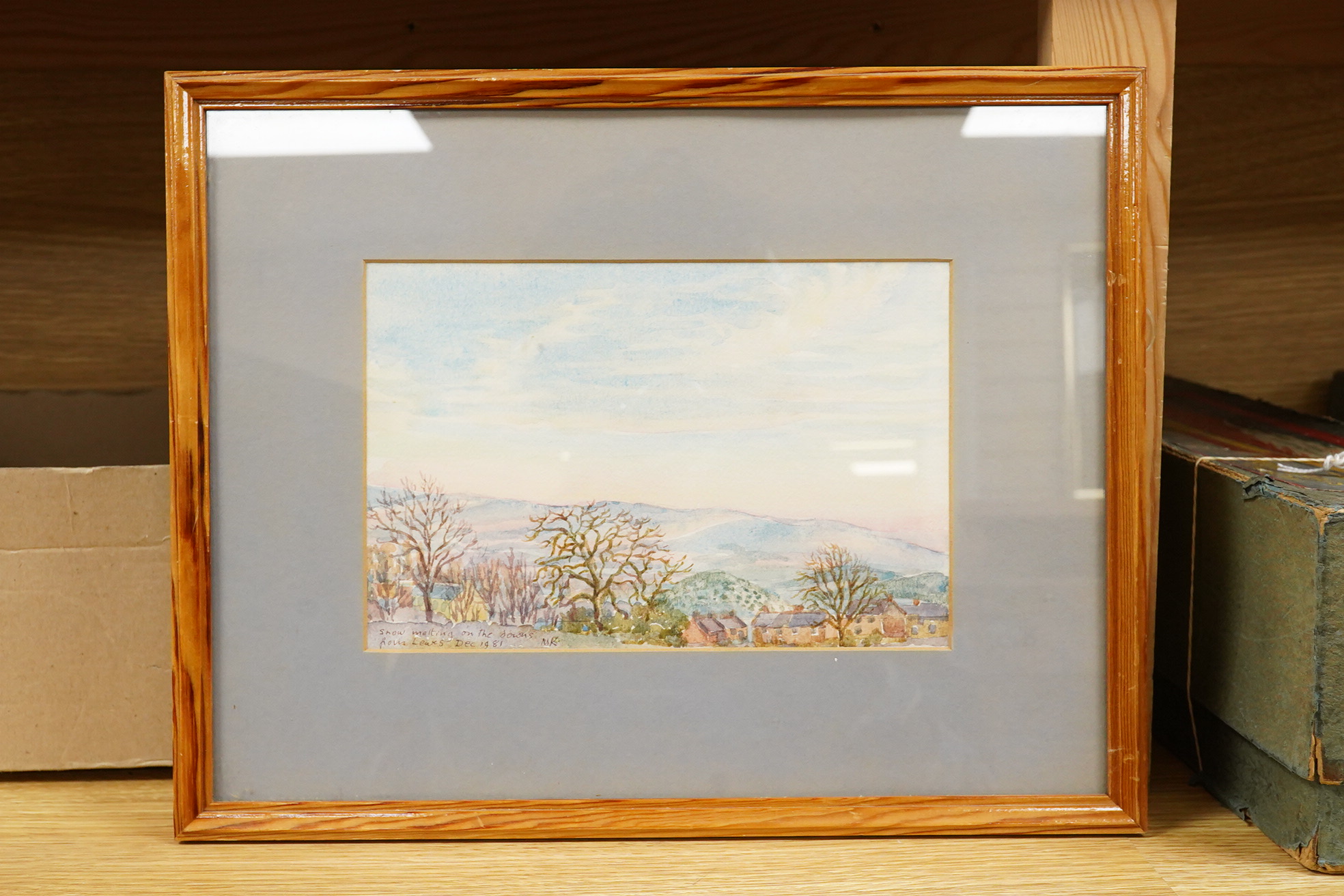 Lot 729 , Maud Kennedy (20th / 21st C.), ‘Snow Melting on the Downs From Lewes Dec 1981’, watercolour, 13.5 x 20cm