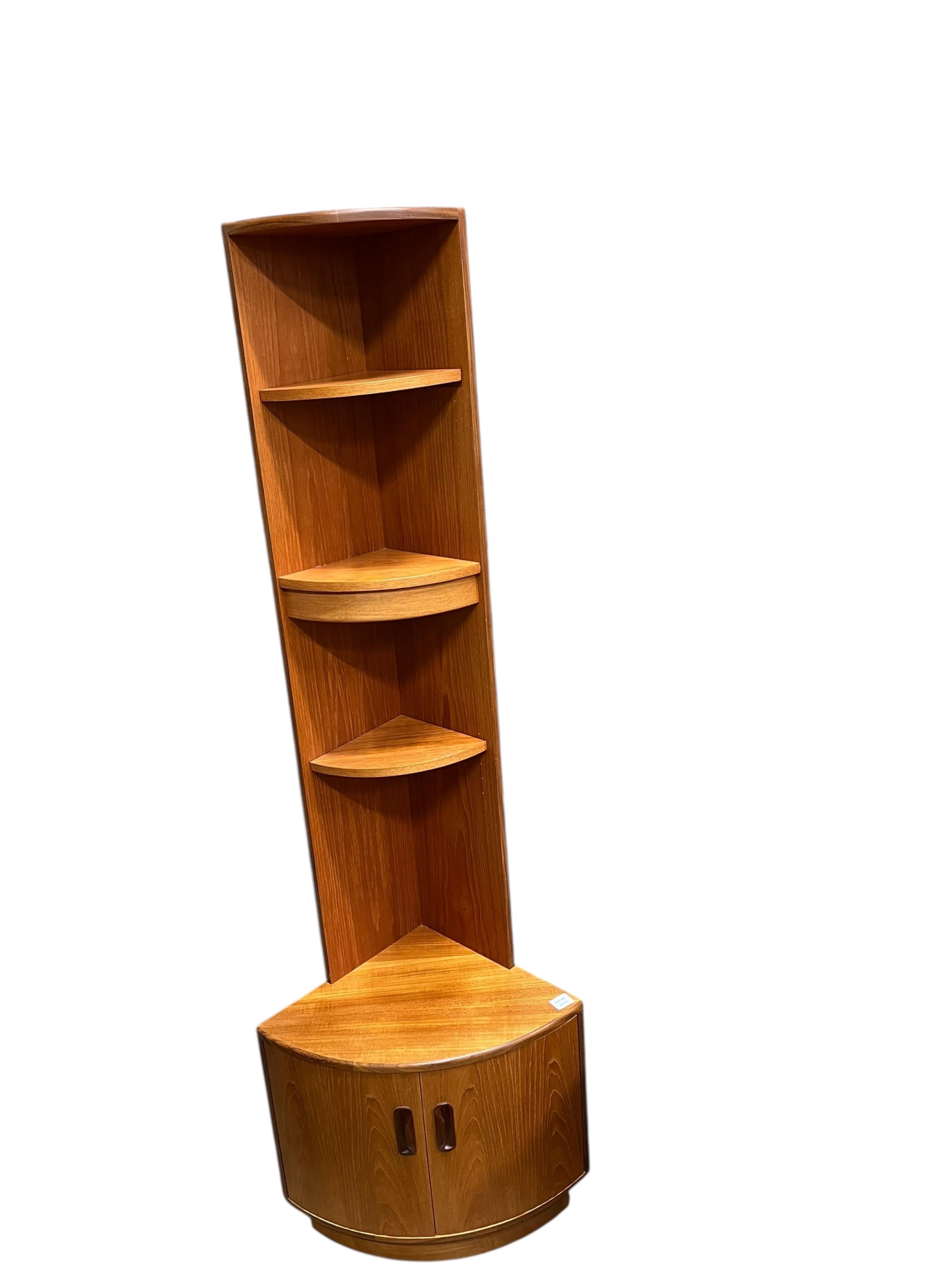 A mid century teak standing corner cabinet, width 63cm, depth 43cm, height 198cm