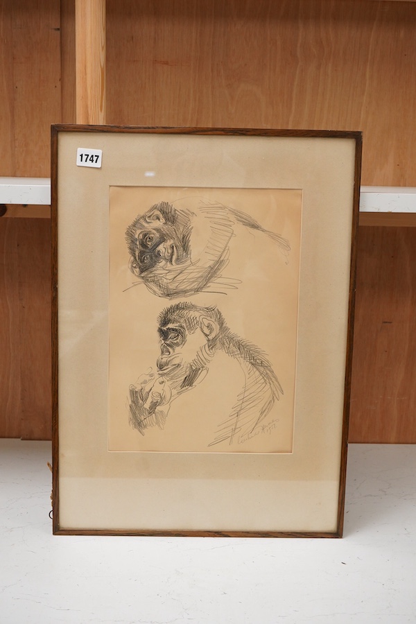 Lot 1747 , Gertrude Hemes, Studies of chimpanzees, signed and dated 1957, pencil, 35 x 25cm