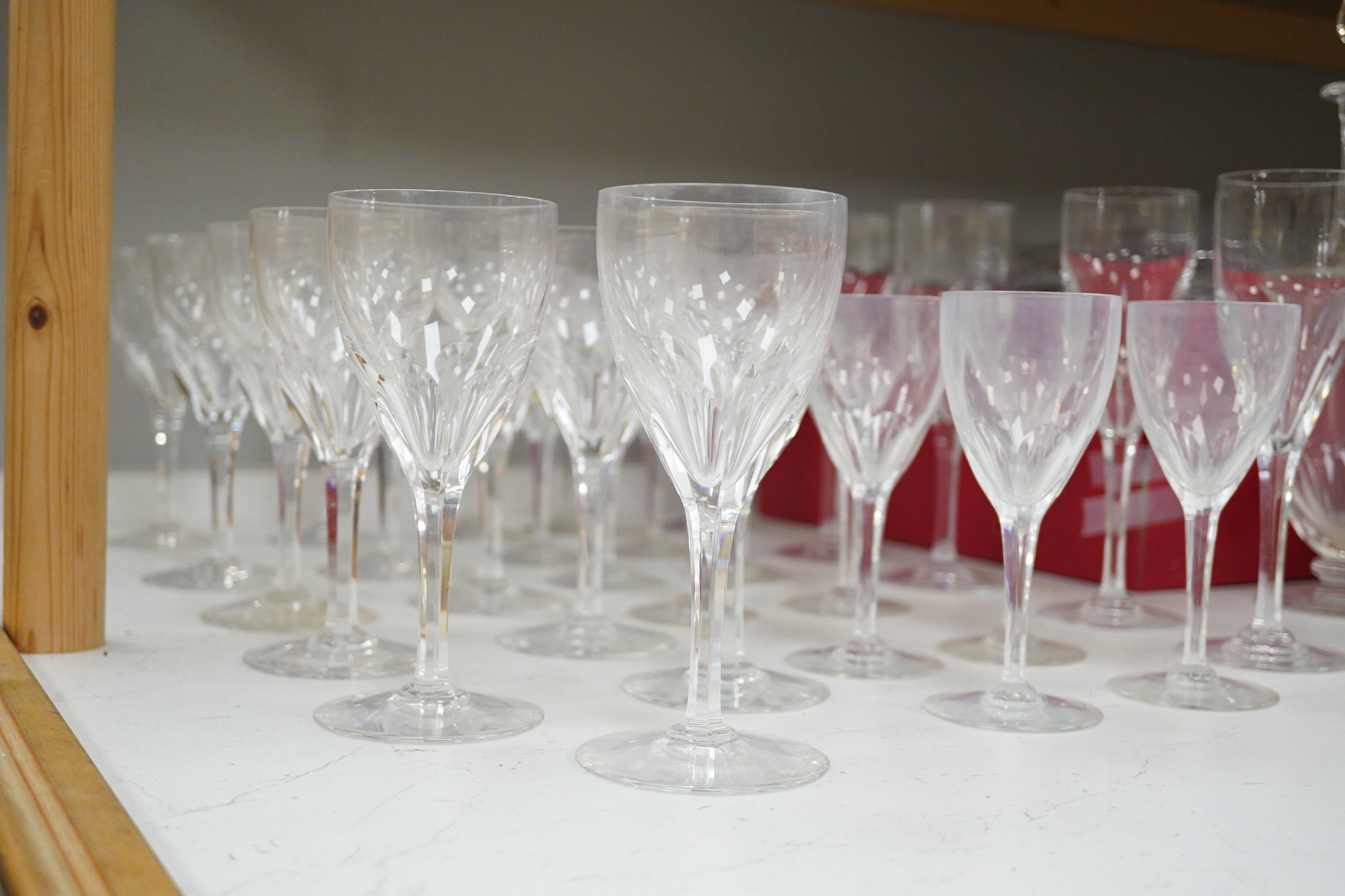 An extensive suite of Baccarat Genoa pattern table glass, comprising; Box 1- 6 white wine glasses