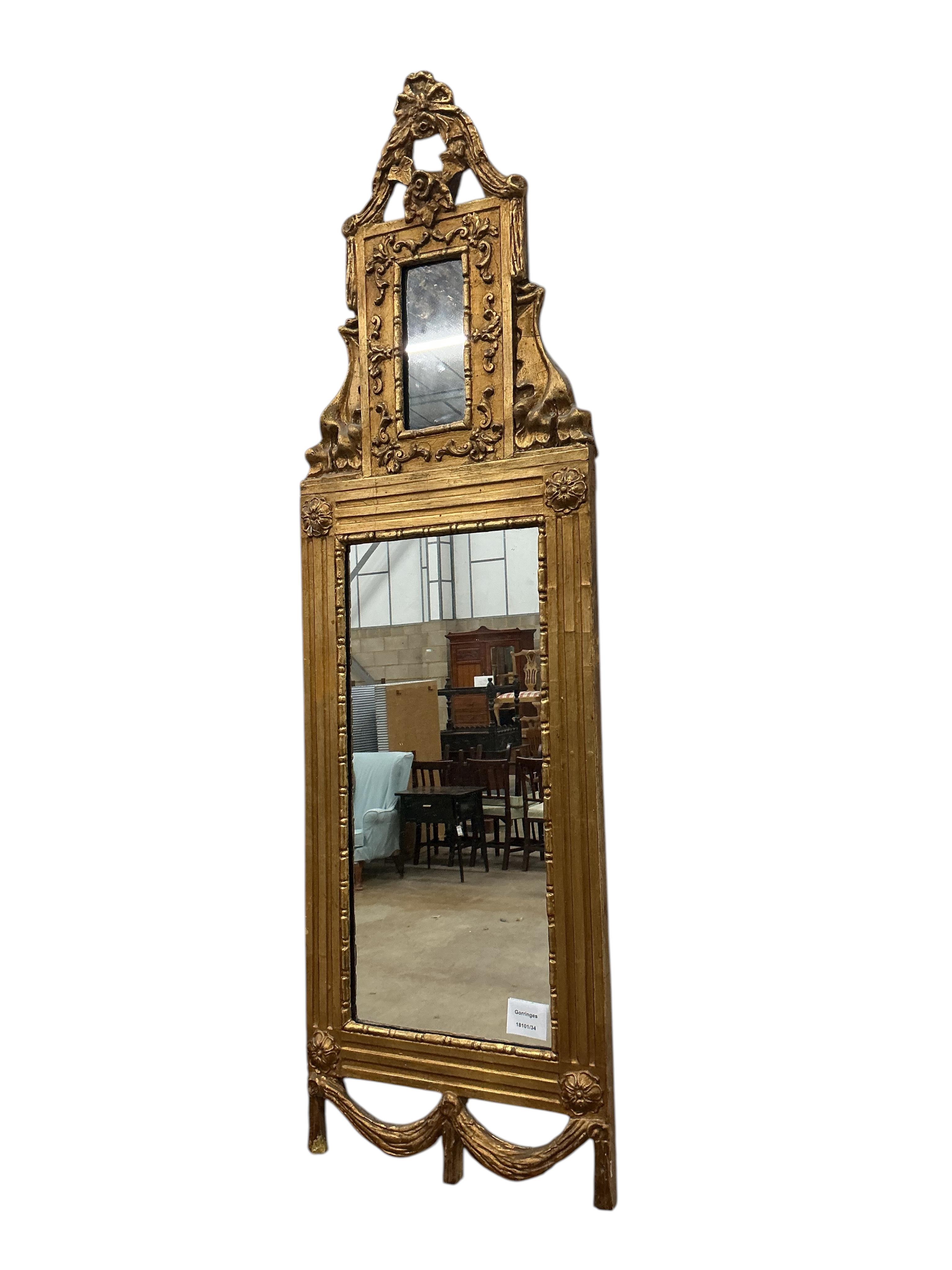 Lot 21 , A small carved giltwood and composition wall mirror, width 33cm, height 110cm