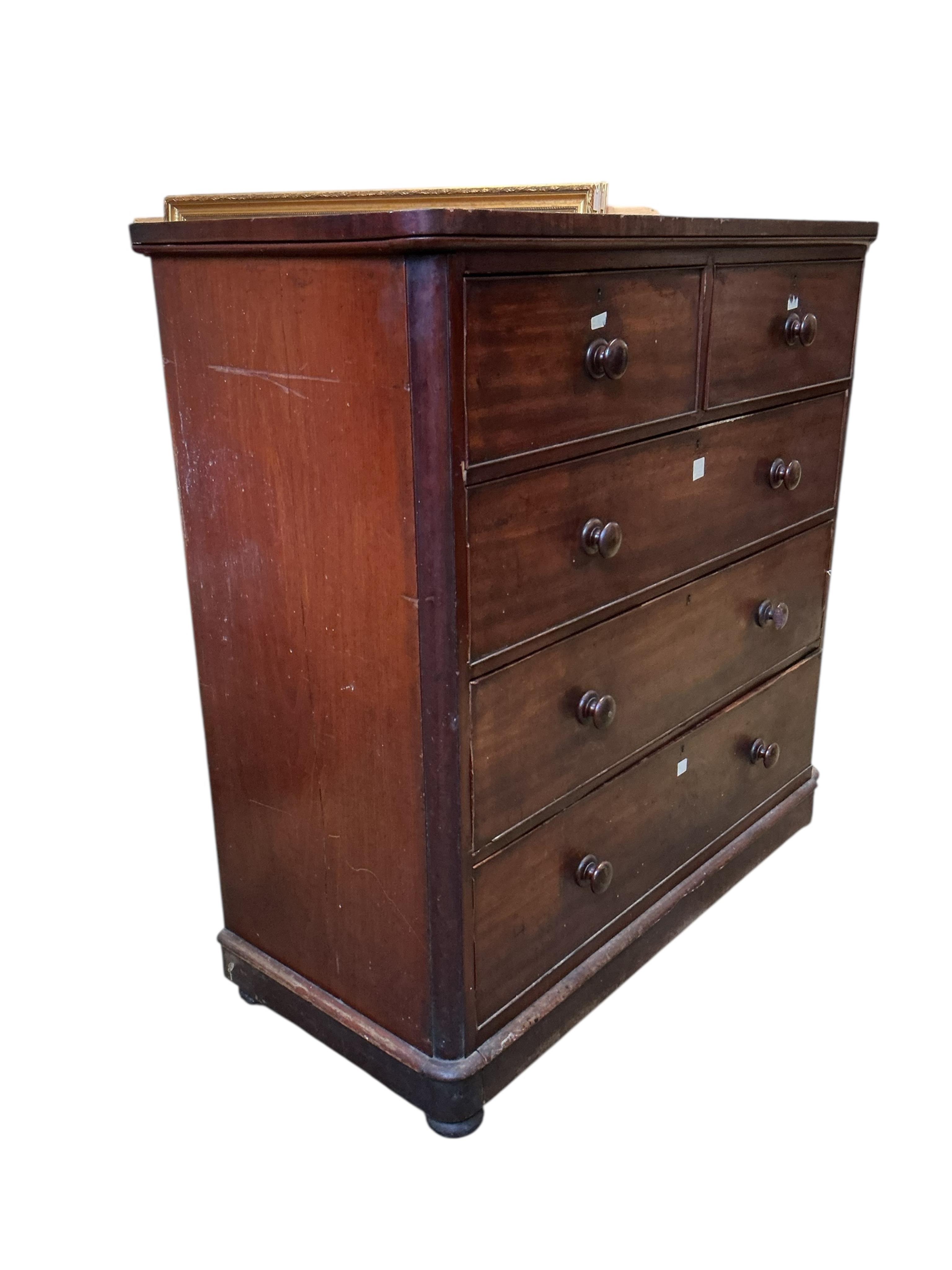 Lot 1045 , A Victorian mahogany chest of five drawers, width 120cm, depth 54cm, height 122cm