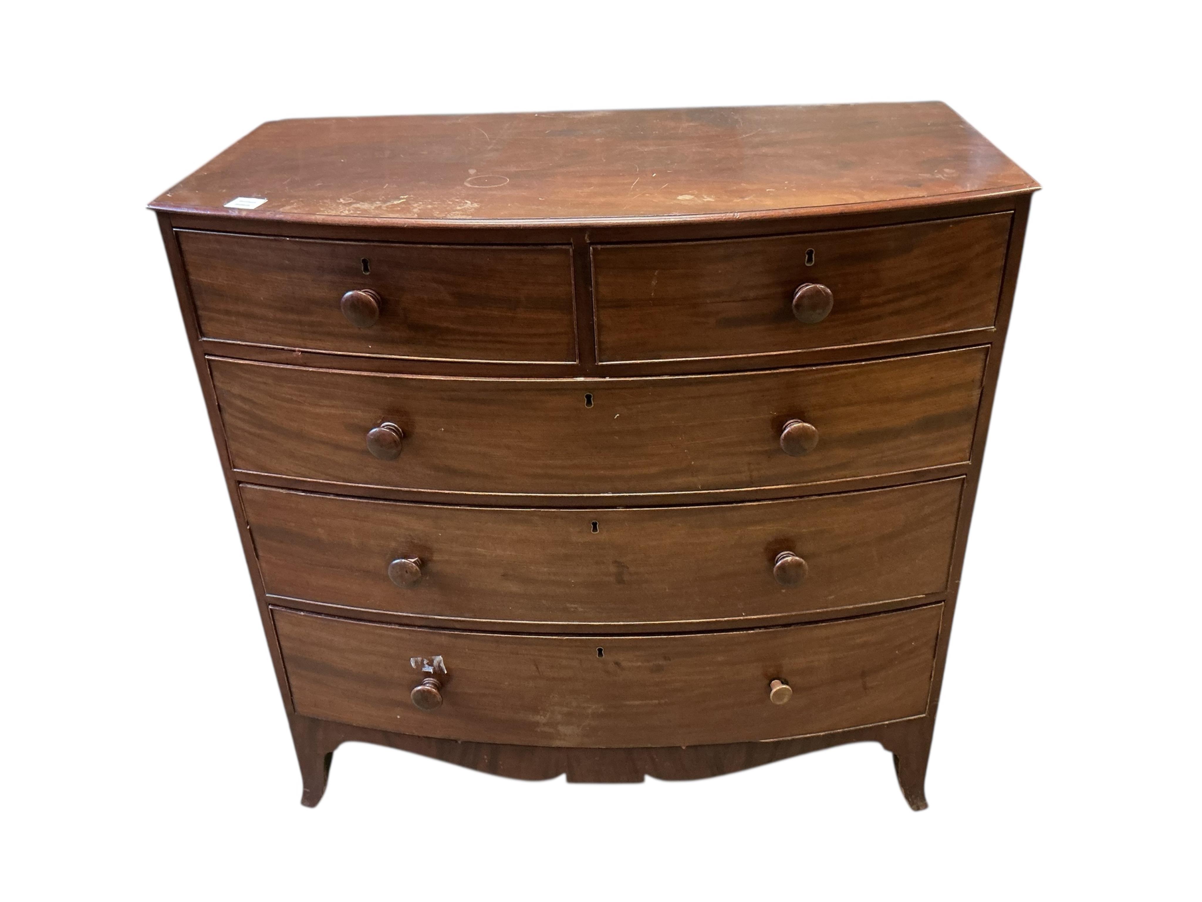 An early Victorian mahogany bowfront chest of drawers, width 107cm, depth 54cm, height 106cm