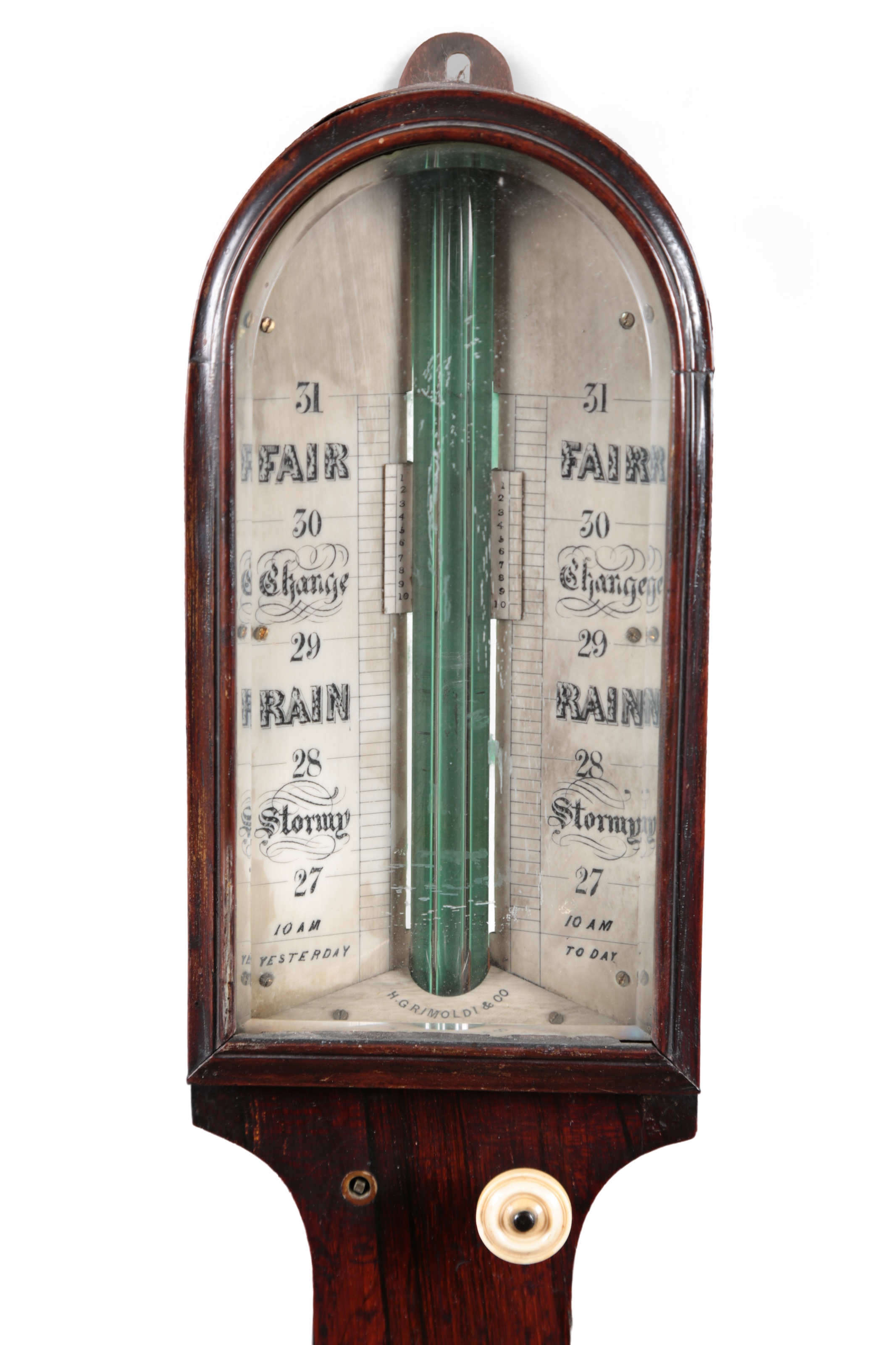 A mahogany stick barometer, by H Grimoldi & Co., mid-19th century,