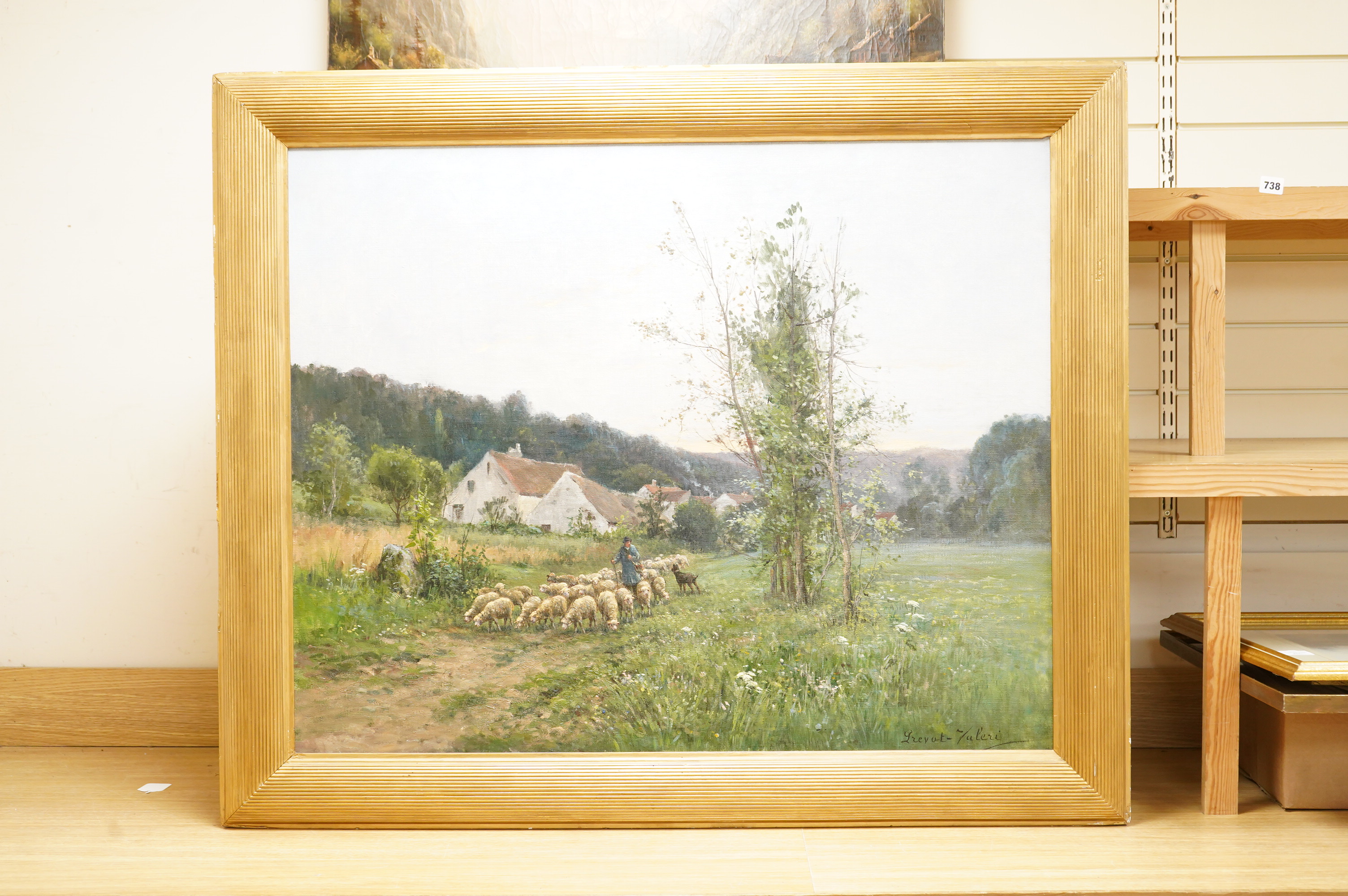 Lot 750 , Auguste Prevot-Valeri (1857-1930), A shepherd and his flock on a lane, signed lower right, oil on canvas, 78 x 97cm
