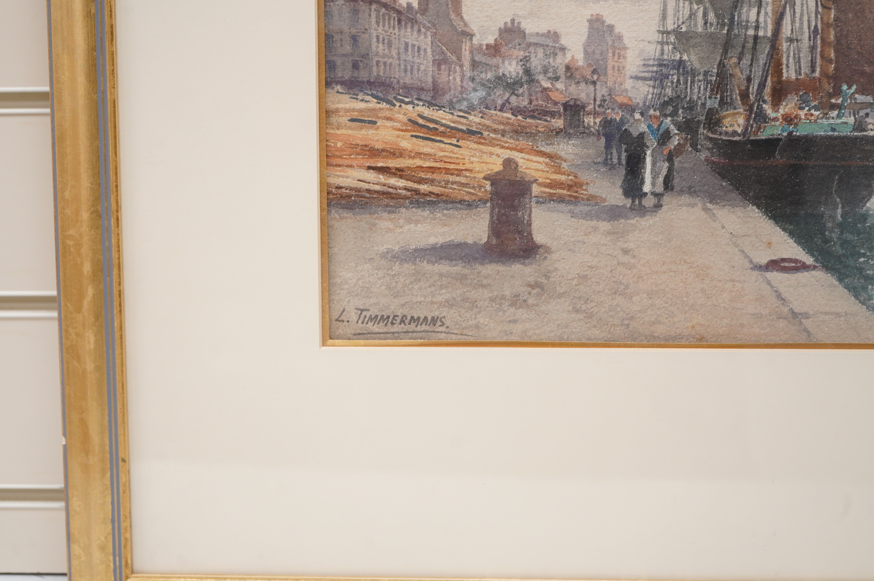 Louis Etienne Timmermans (1846-1910), Harbour scene, signed lower left, watercolour, 31 x 47cm