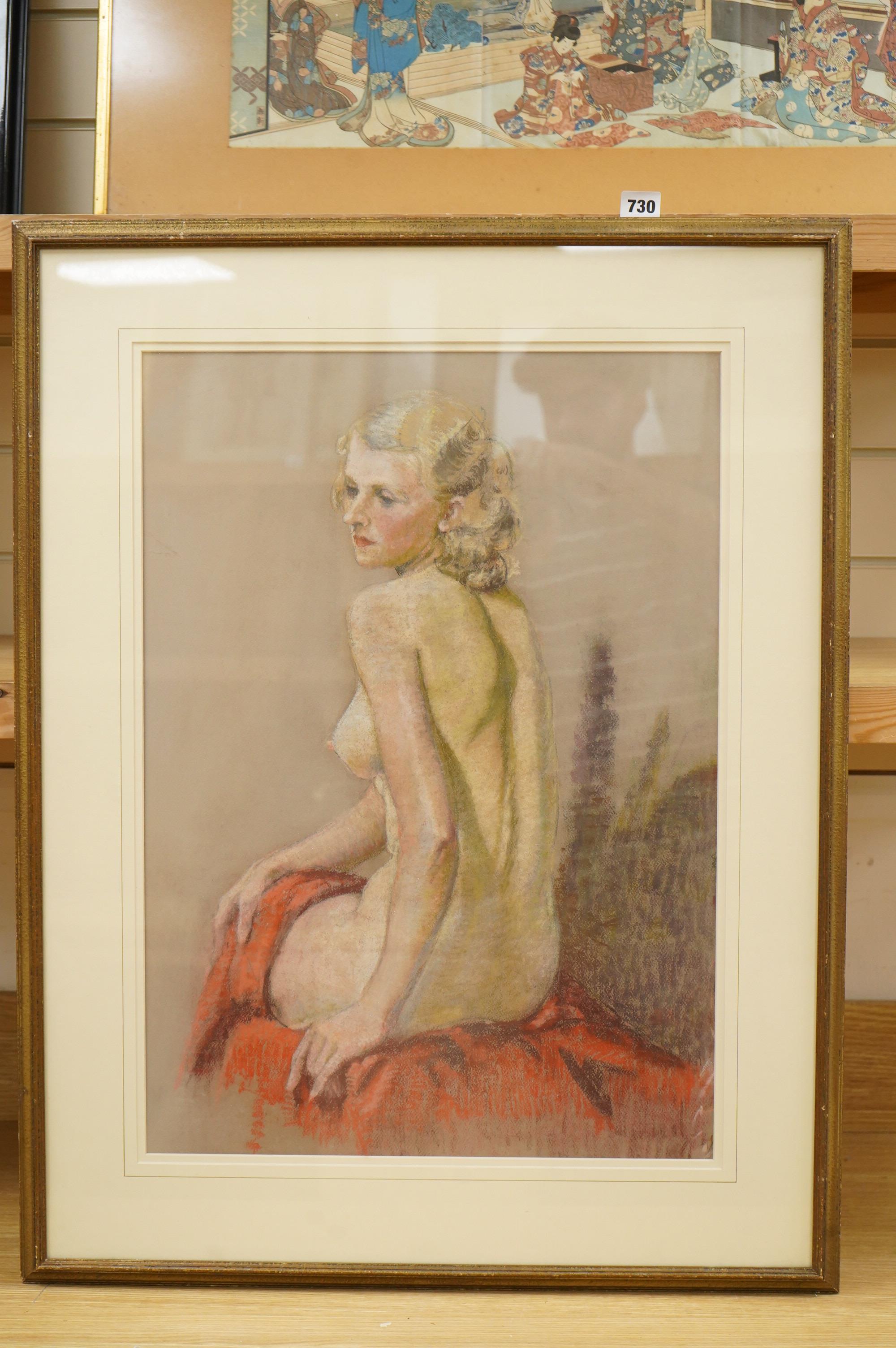 Lot 732 , Elsie Murray (19th/20th century), Nude study of a seated lady, unsigned, label verso, pastels, 61 x 43cm
