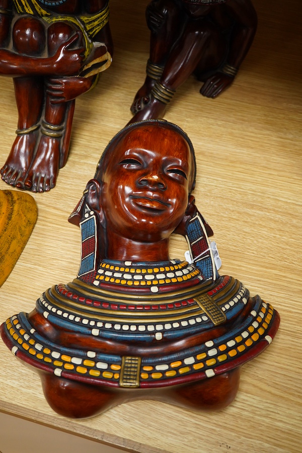 Lot 366 , Four Kenyan faux wood figures/busts, signed Masai