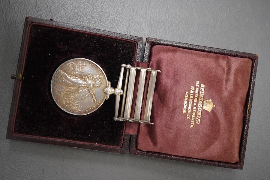 A Queen’s South Africa Medal awarded to 2264 CORPL: R.V. Pitts. Middlesex Regt., with claps for Cape Colony, Transvaal, and South Africa 1902