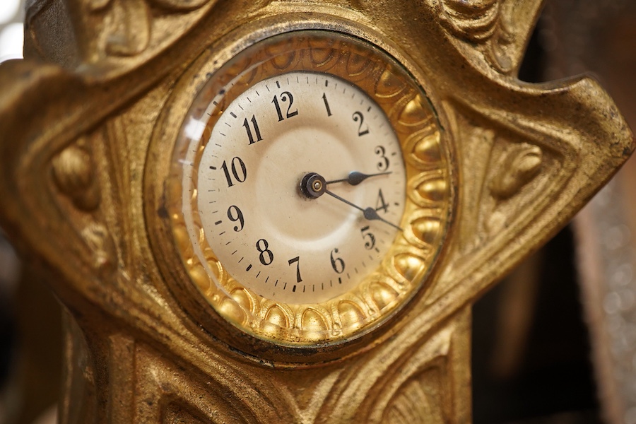 A 1920s Art Nouveau style gilt mantel timepiece, 25cm high