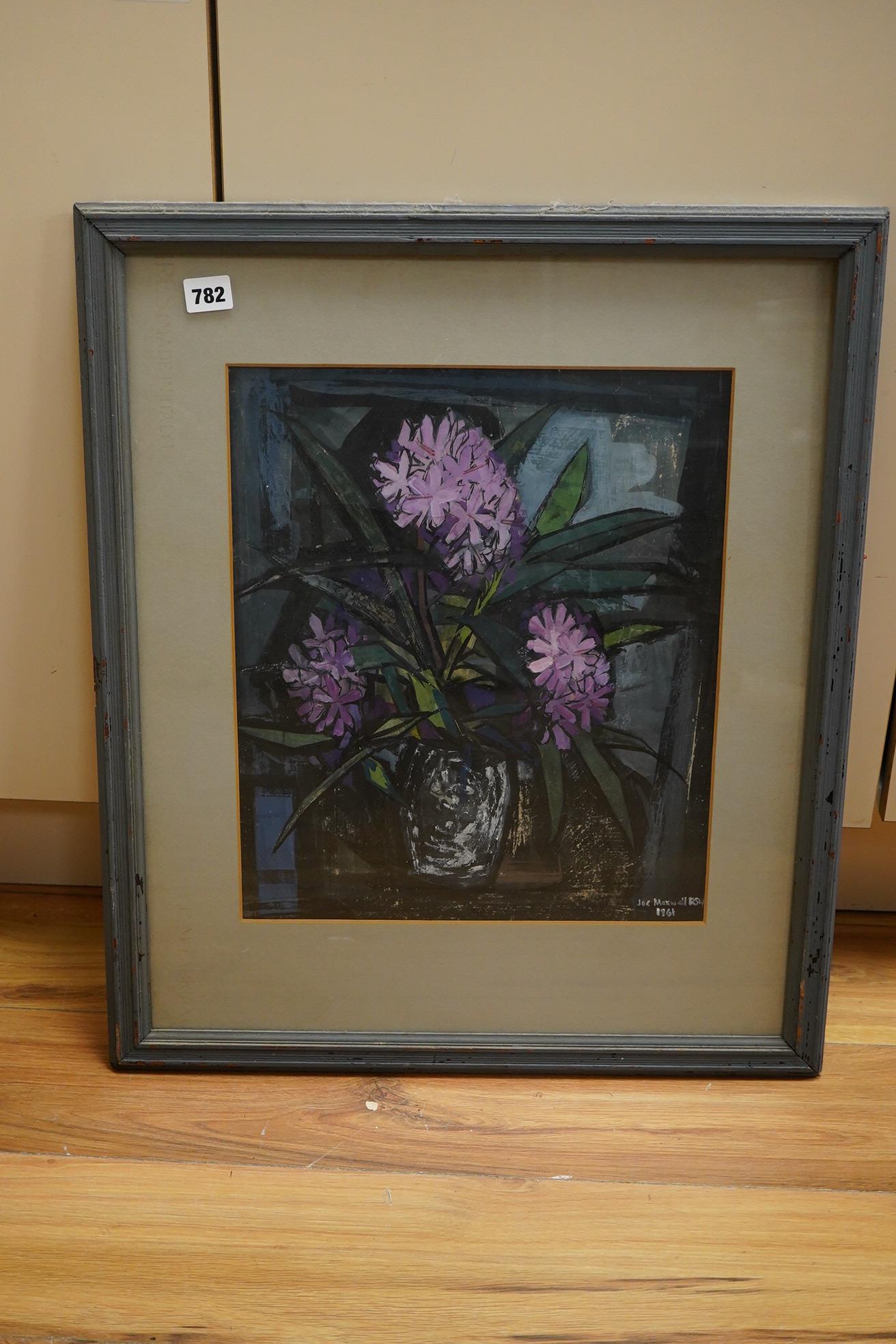 Lot 782 , Joe Maxwell, Still life of flowers in a vase, signed and dated 1961, mixed media and gouache, 39 x 33cm