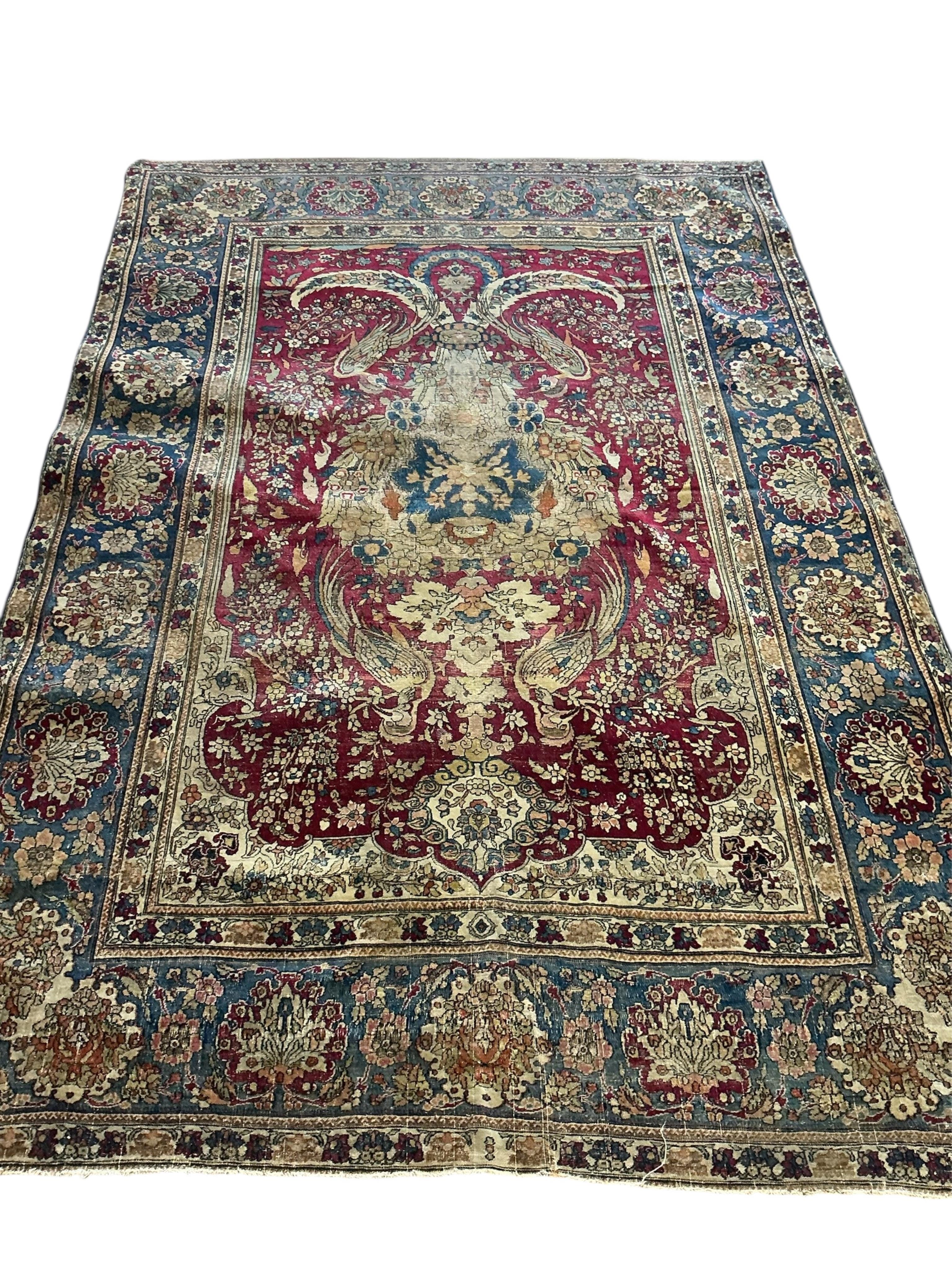 Lot 1044 , An early 20th century Isfahan red ground rug woven with exotic birds, 205 x 135cm